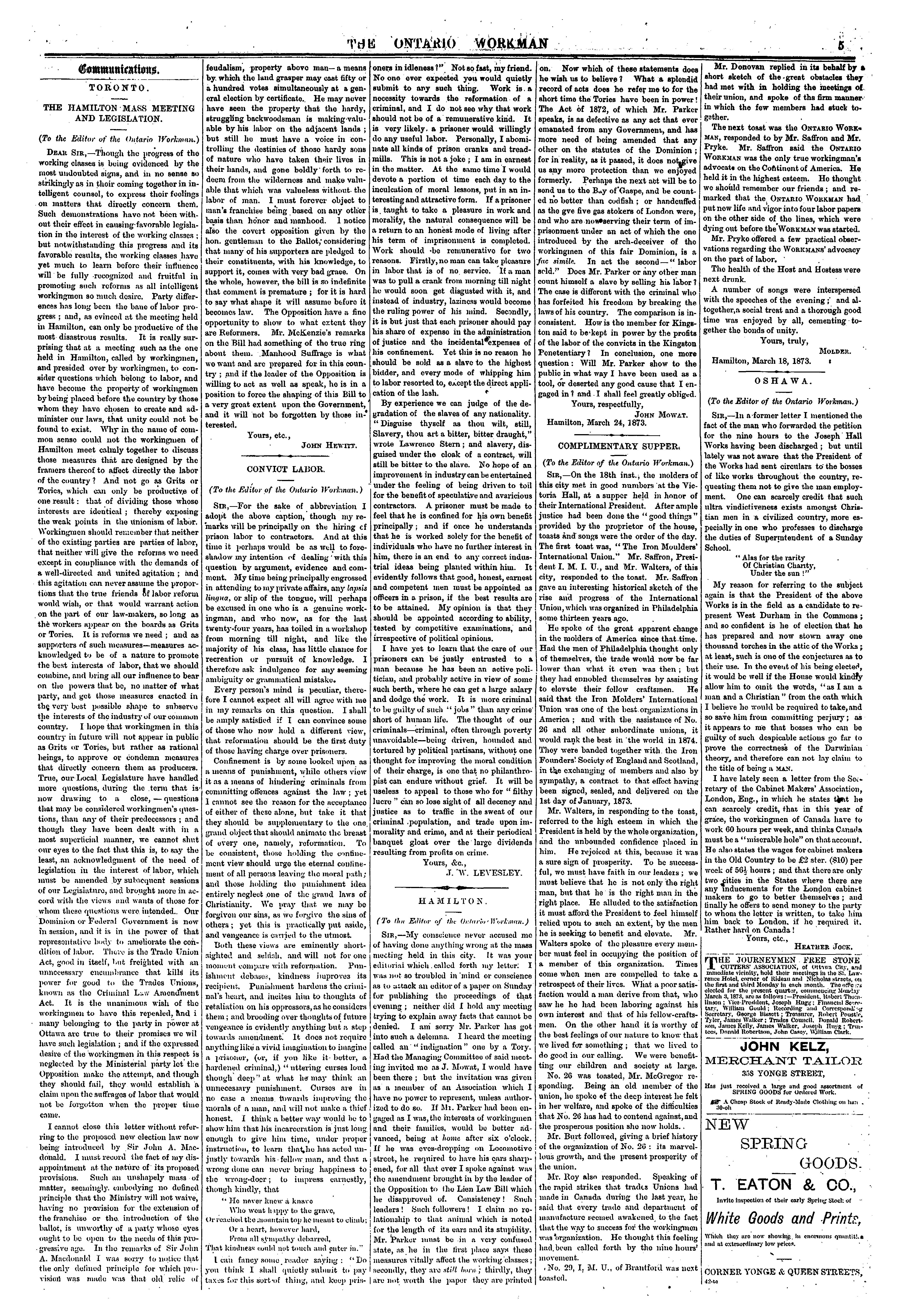 The Ontario workman : [Vol. 1, no. 50 (Mar. 27, 1873)]