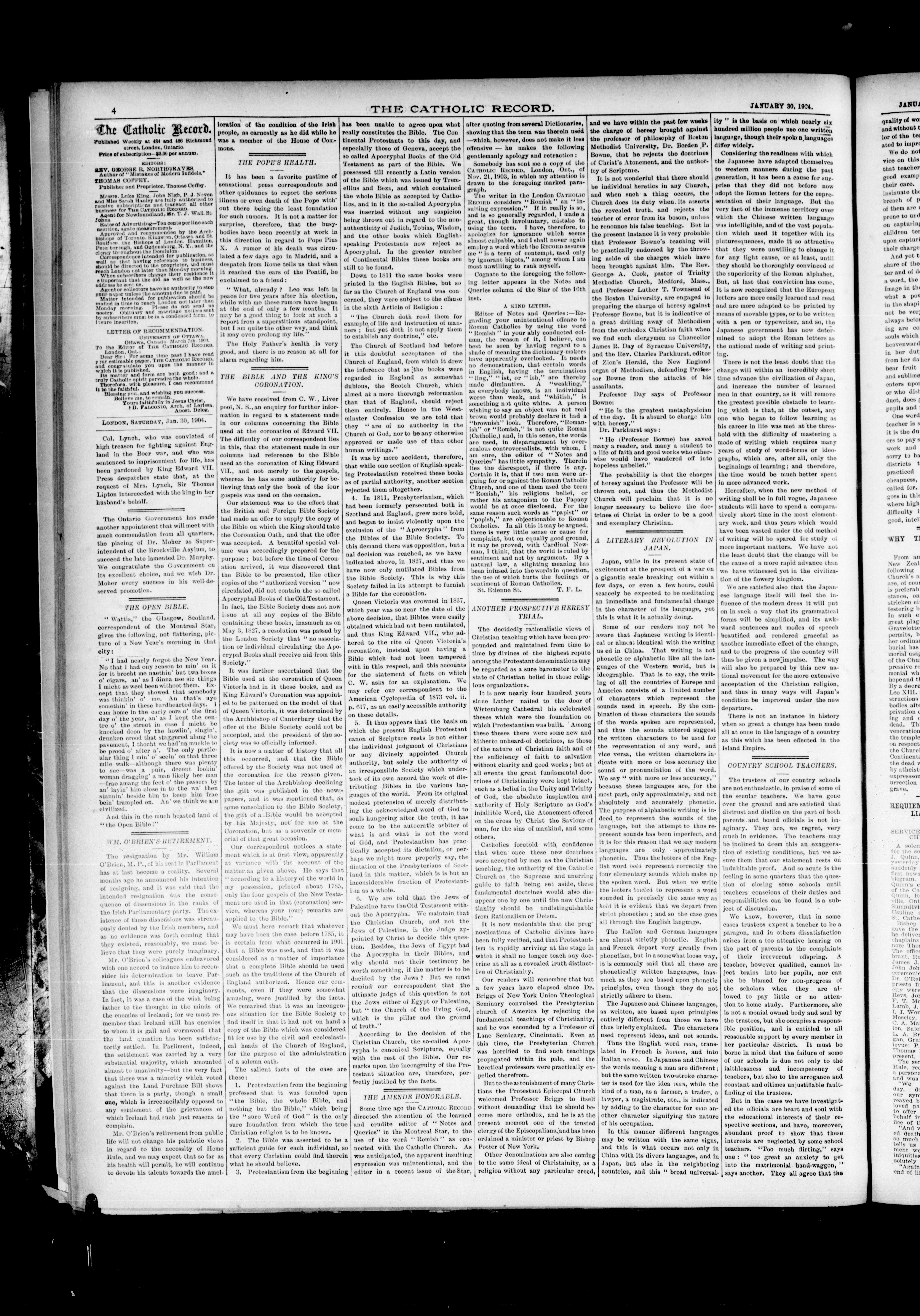 The Catholic record : Volume XXVI, [No.] 1319 (January 30, 1904)
