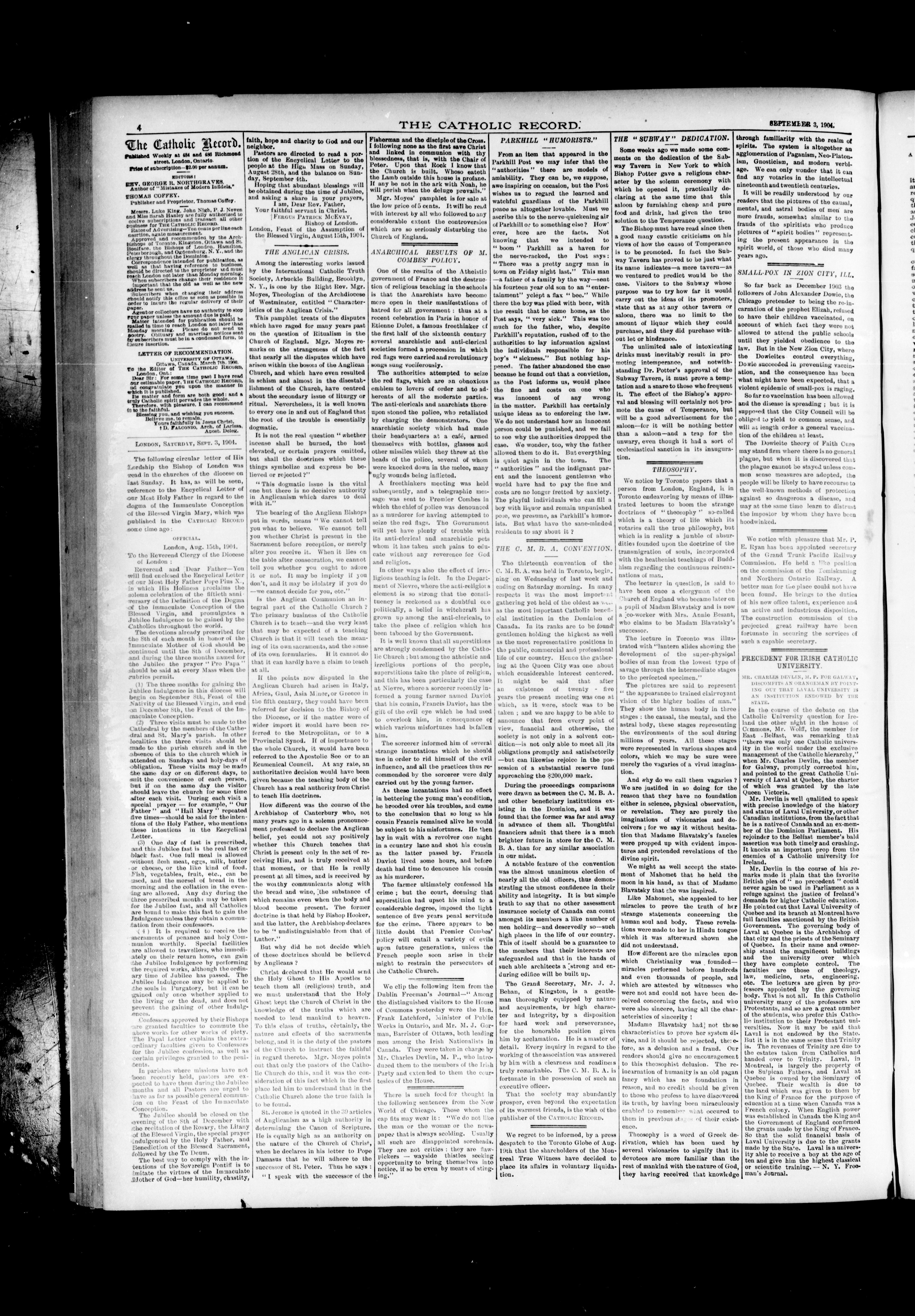 The Catholic record : Volume XXVI, [No.] 1350 (September 3, 1904)
