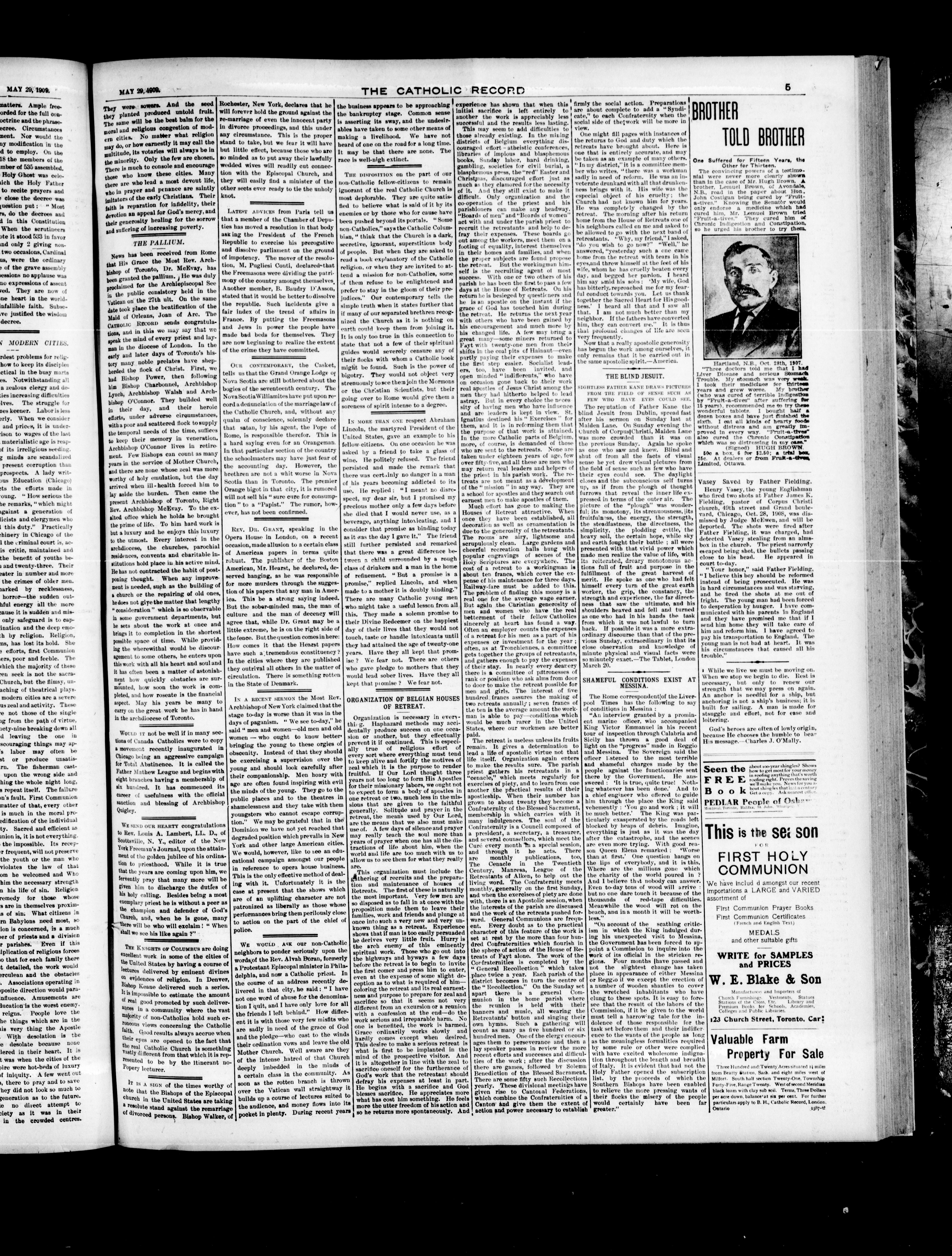 The Catholic record : Volume XXXI, [No.] 1597 (May 29, 1909)