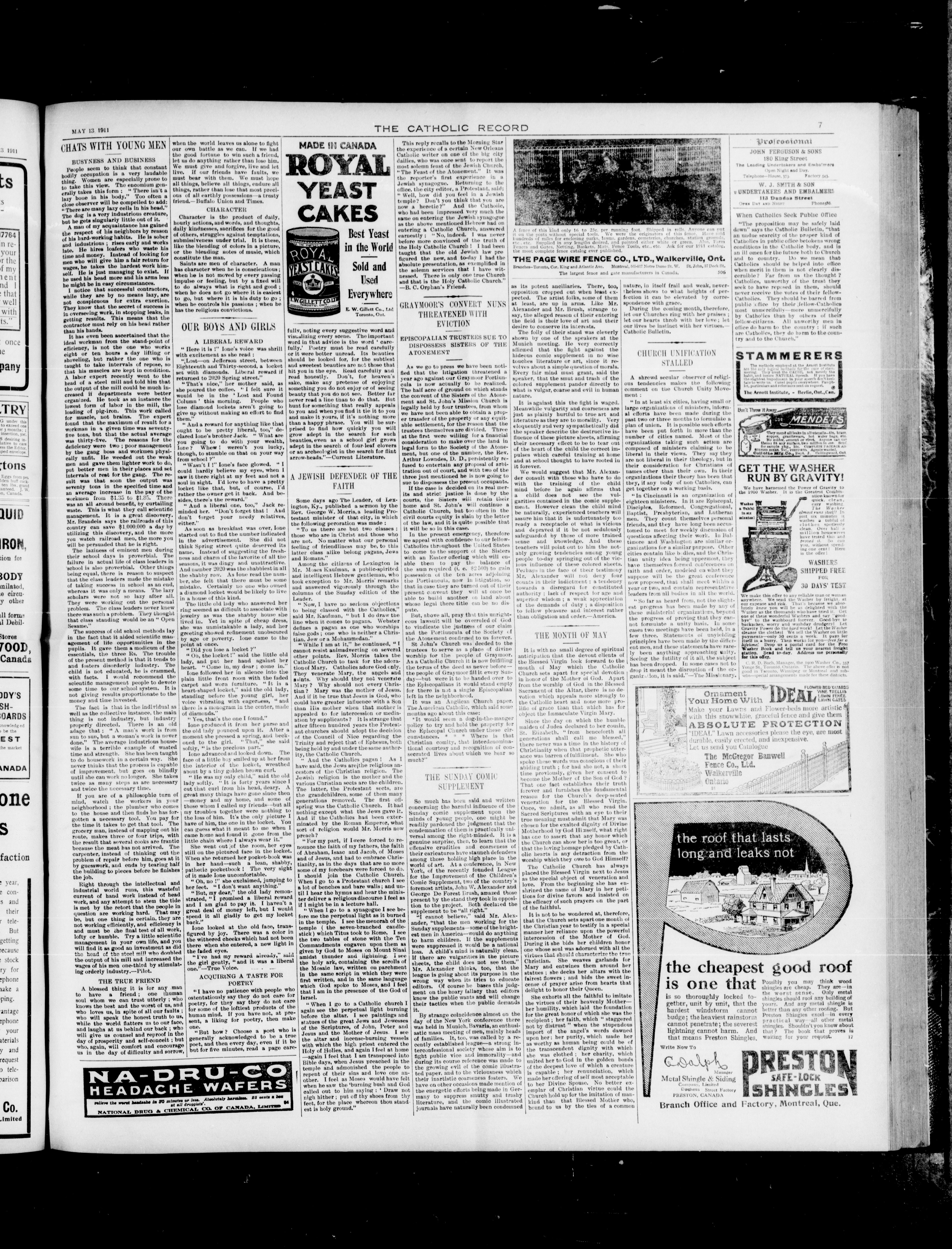 The Catholic record : Volume XXXIII, [No.] 1699 (May 13, 1911)