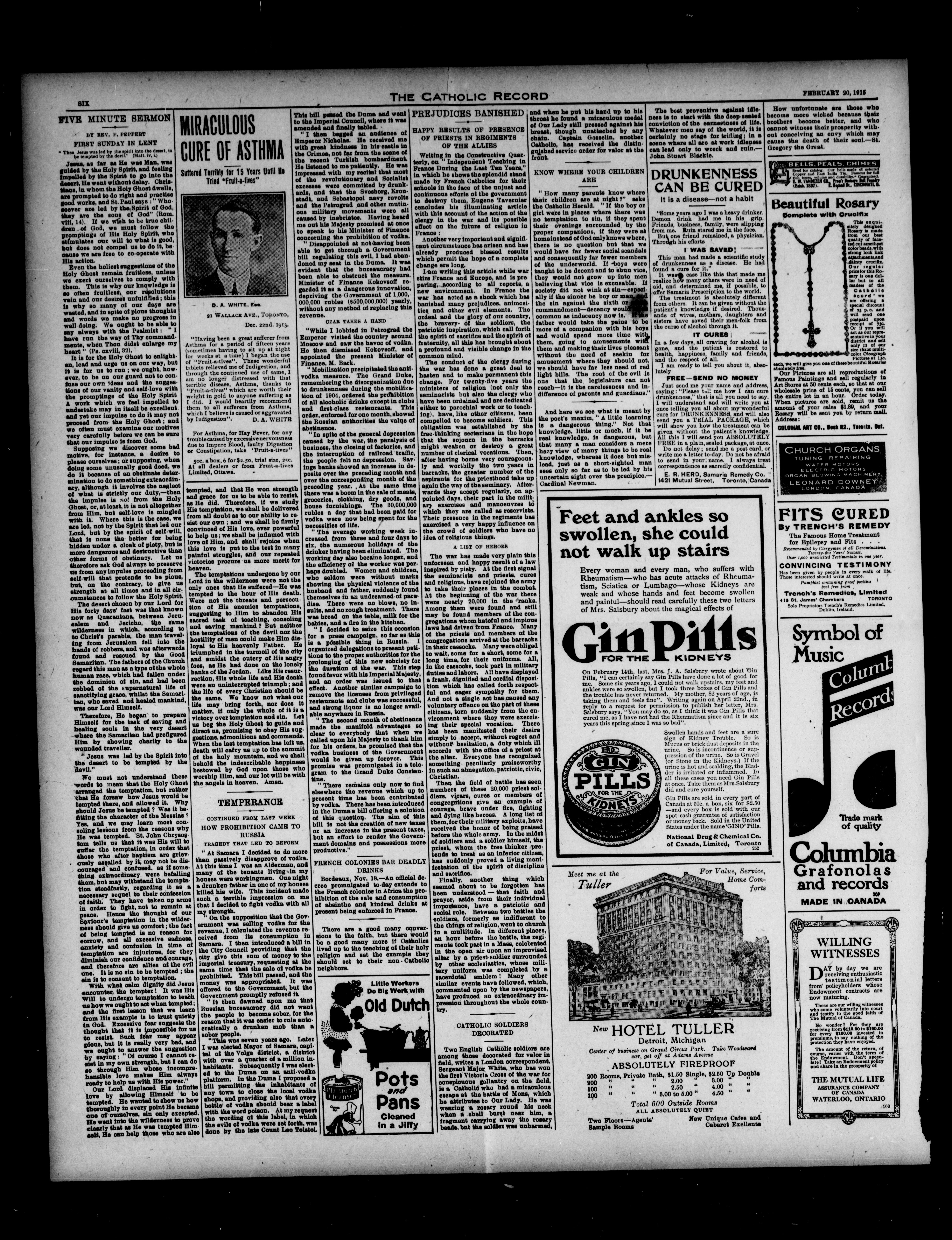 The Catholic record : Volume XXXVII, [No.] 1896 (February 20, 1915)