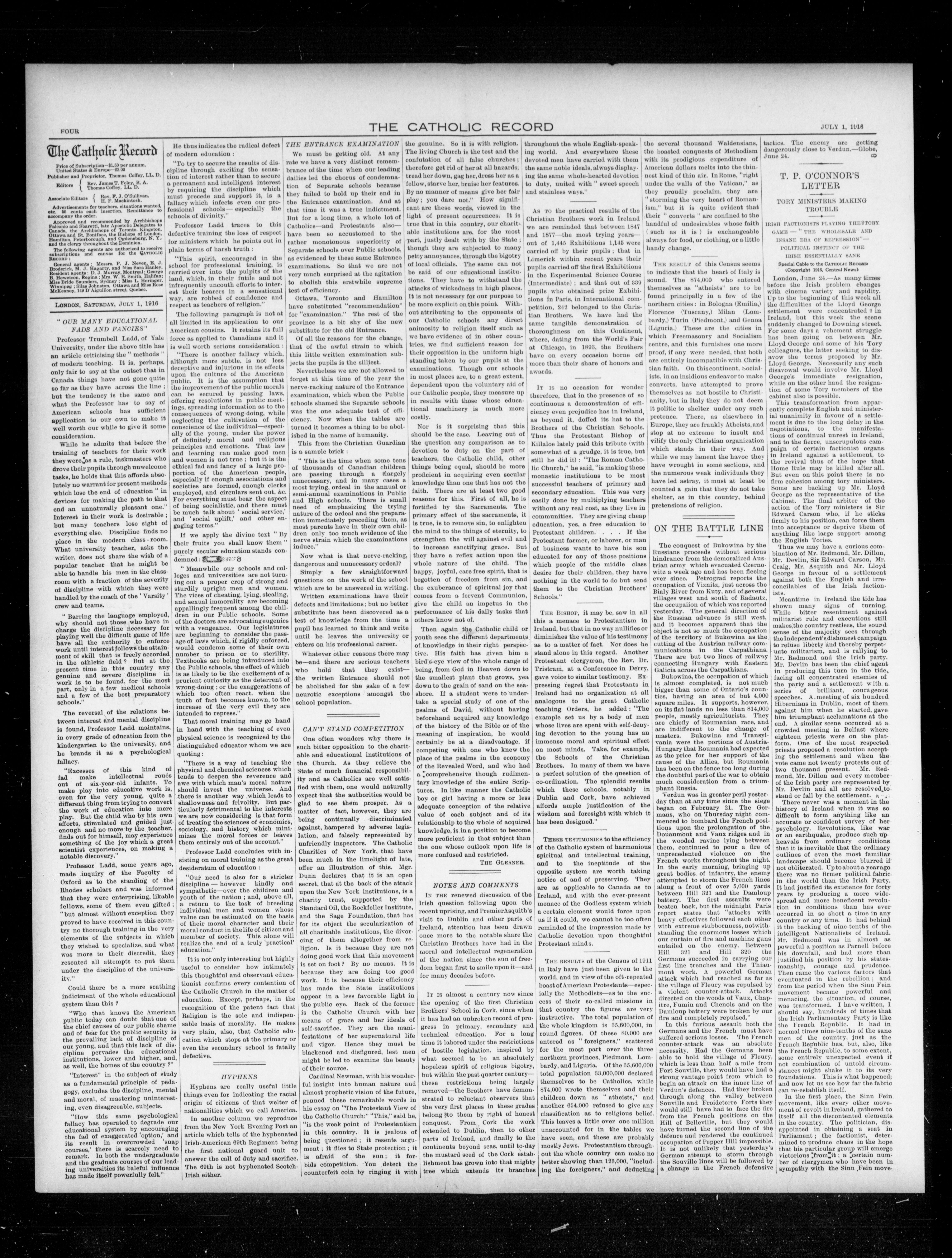 The Catholic record : Volume XXXVIII, [No.] 1967 (July 1, 1916)
