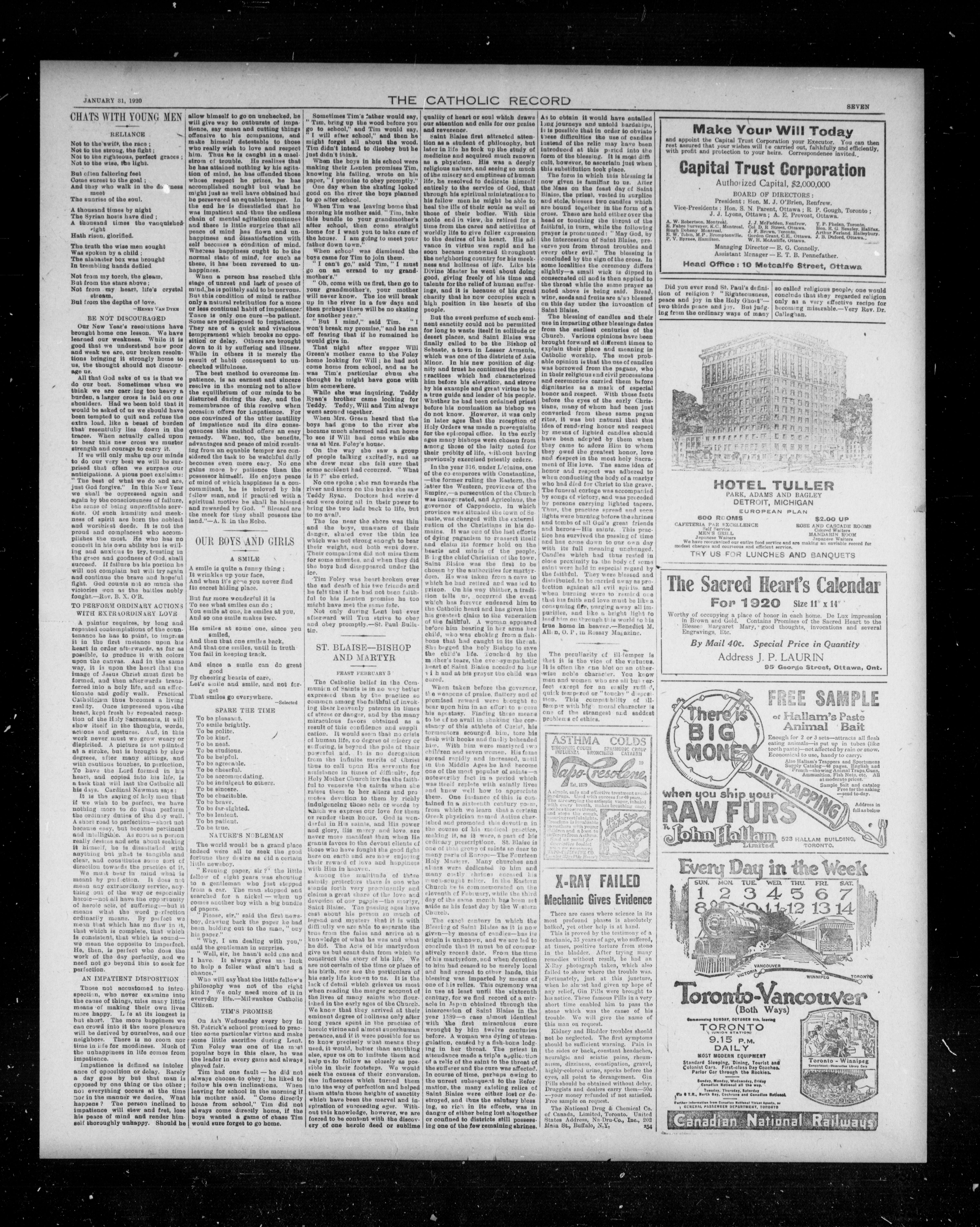 The Catholic record : Volume XXXXII [i.e. XLII], [No.] 2155 (January 31, 1920)