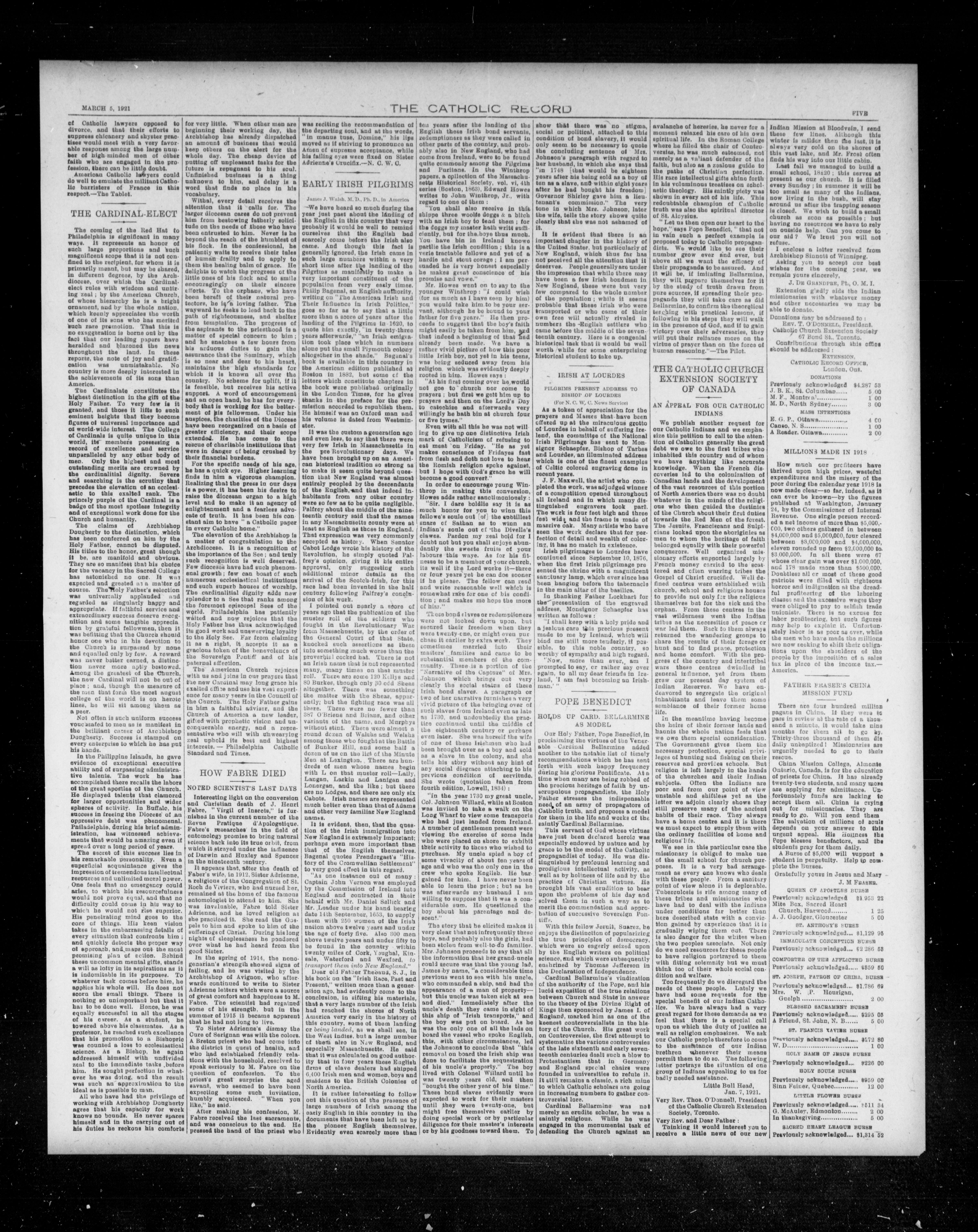 The Catholic record : Volume XXXXIII [i.e. XLIII], [No.] 2212 (March 5, 1921)