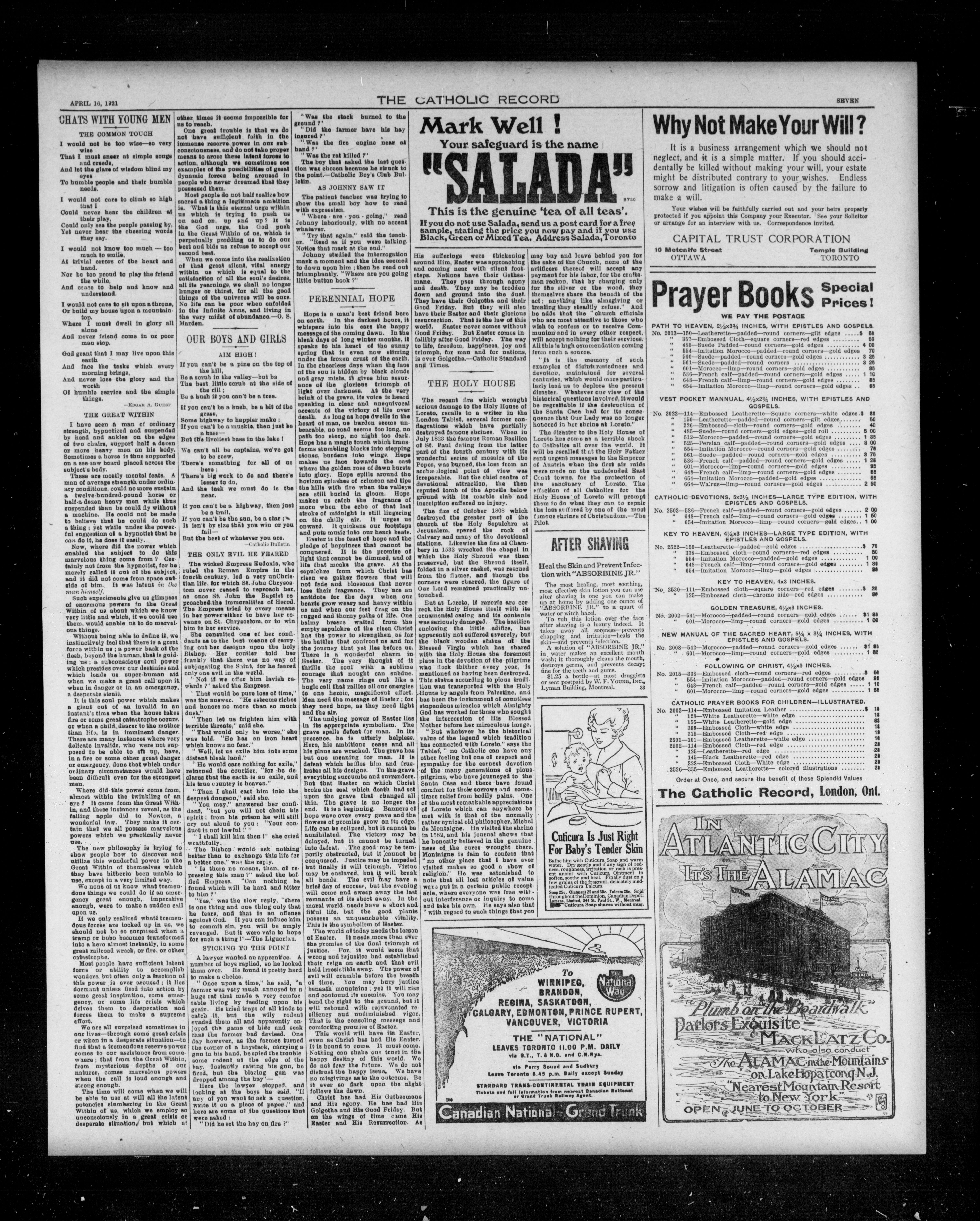 The Catholic record : Volume XXXXIII [i.e. XLIII], [No.] 2218 (April 16, 1921)