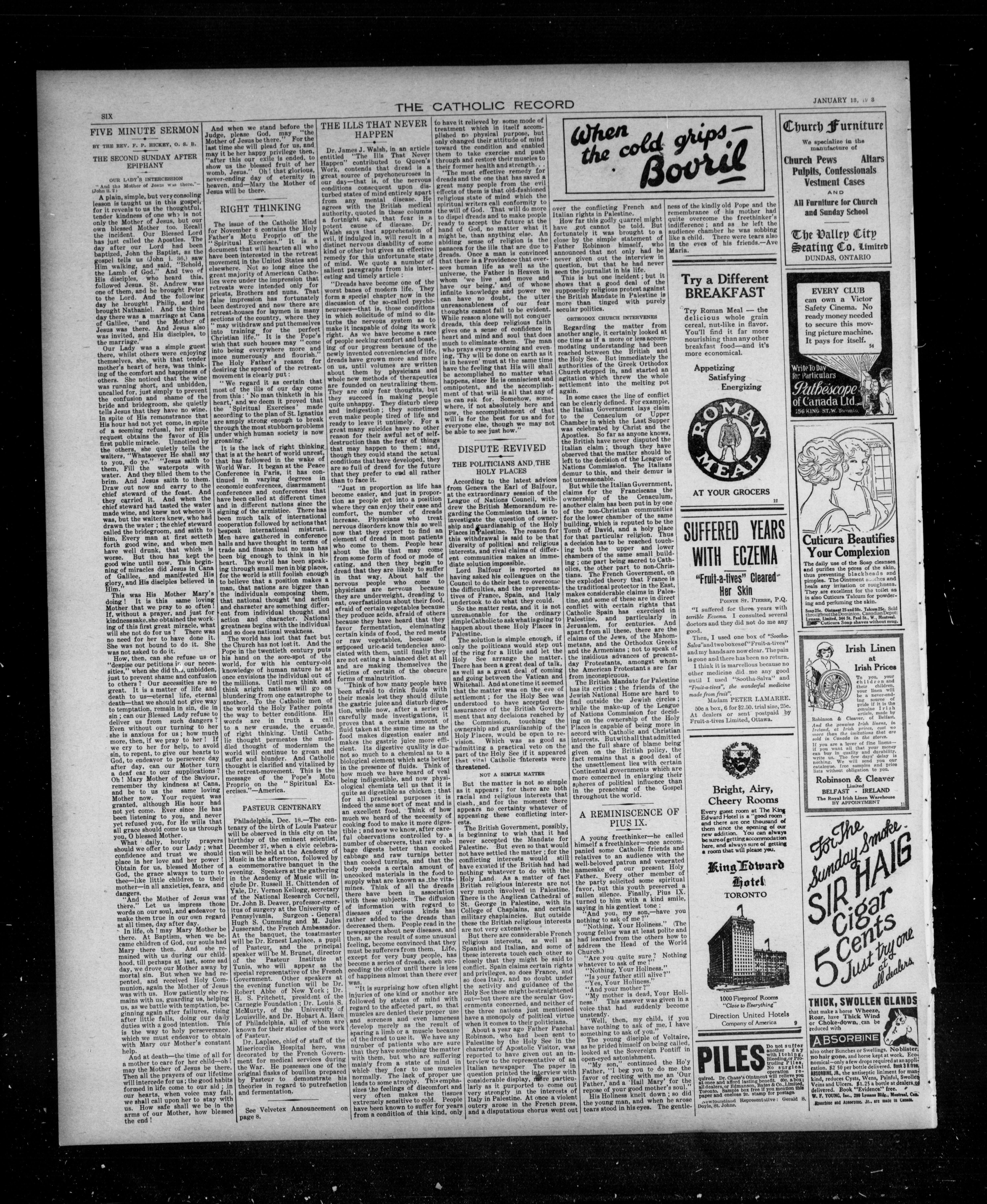 The Catholic record : Volume XLV, [No.] 2309 (January 13, 1923)