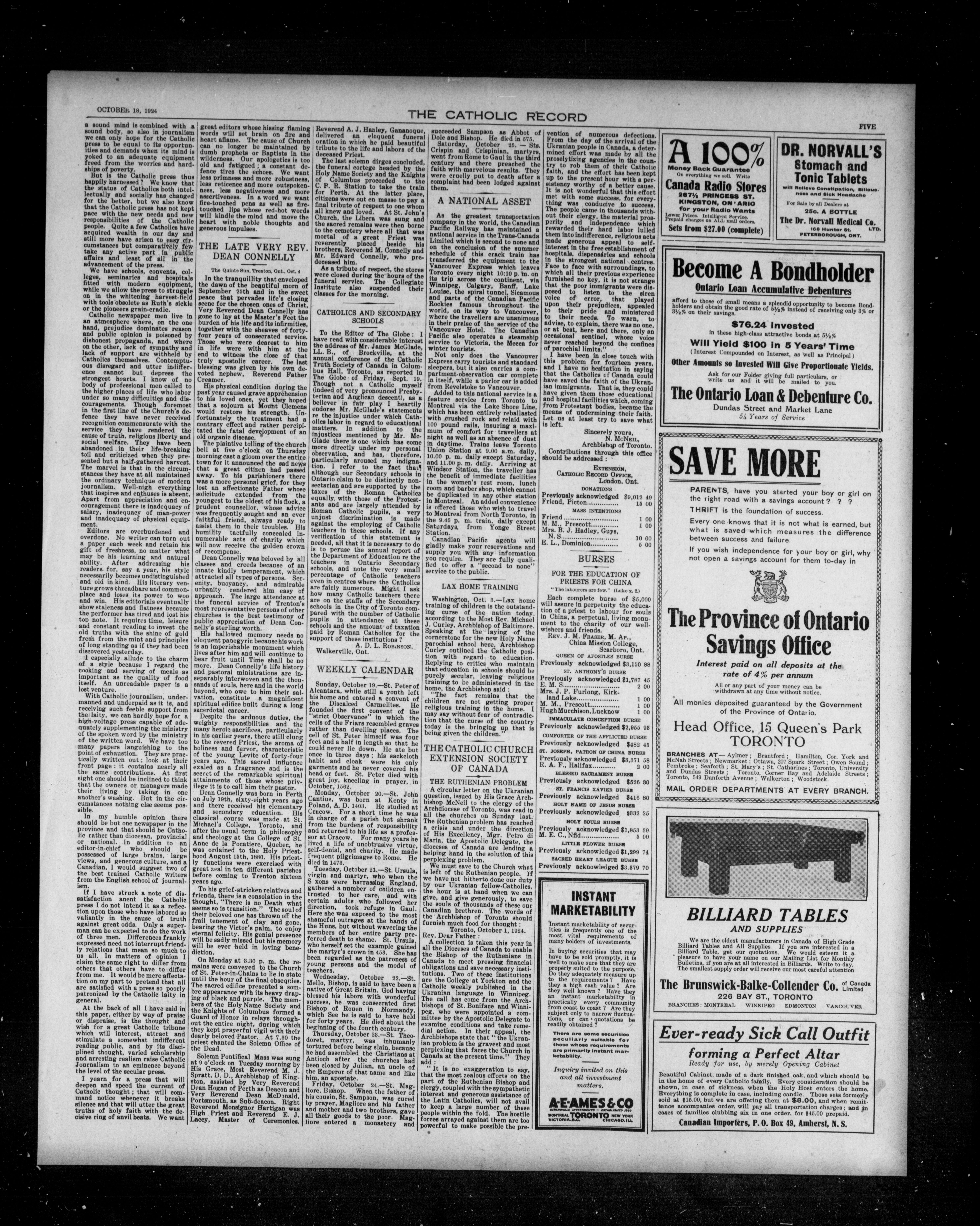 The Catholic record : Volume XLVI, [No.] 2401 (October 18, 1924)