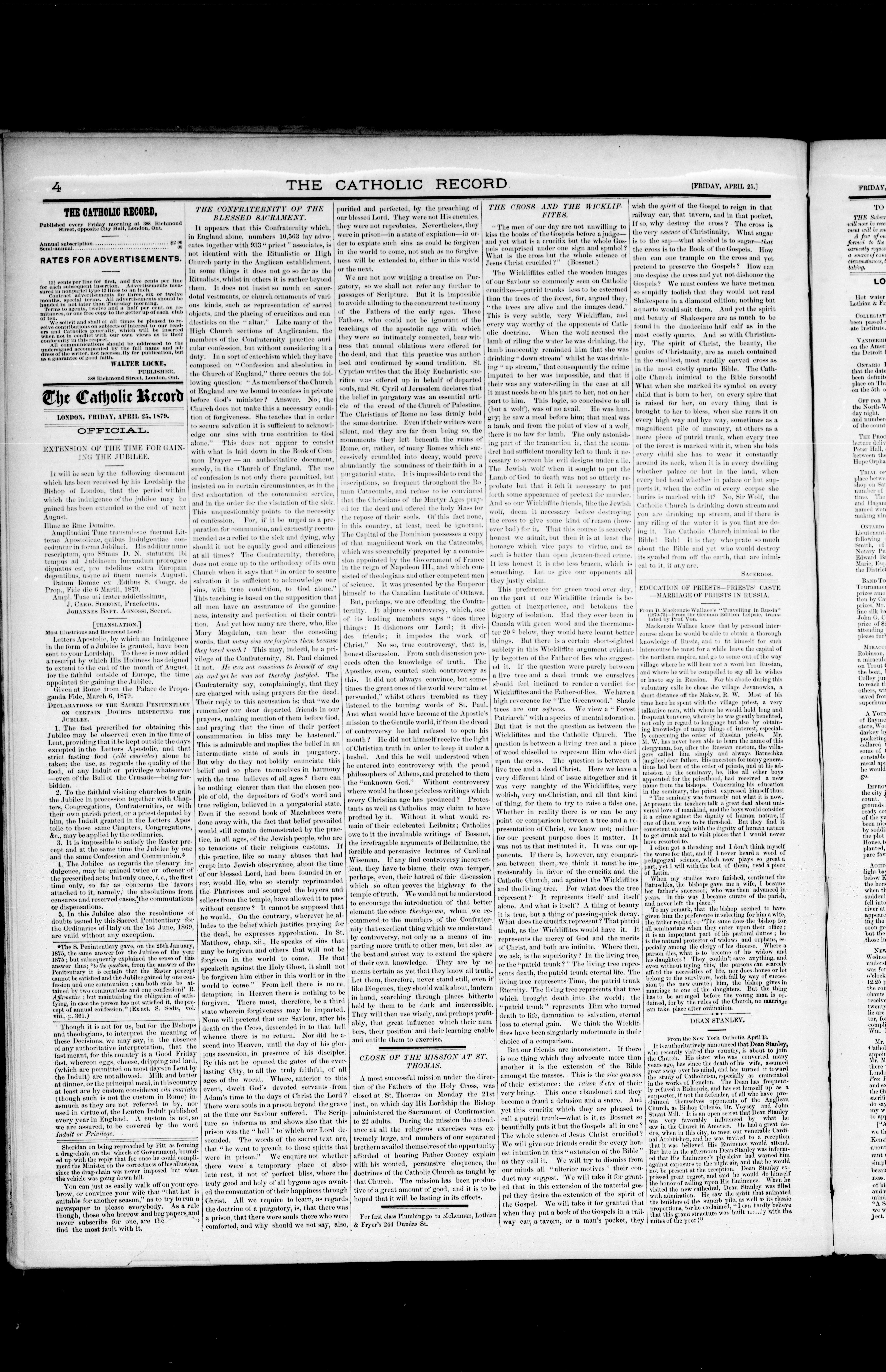 The Catholic record : Vol. 1, No. 30 (April 25, 1879)