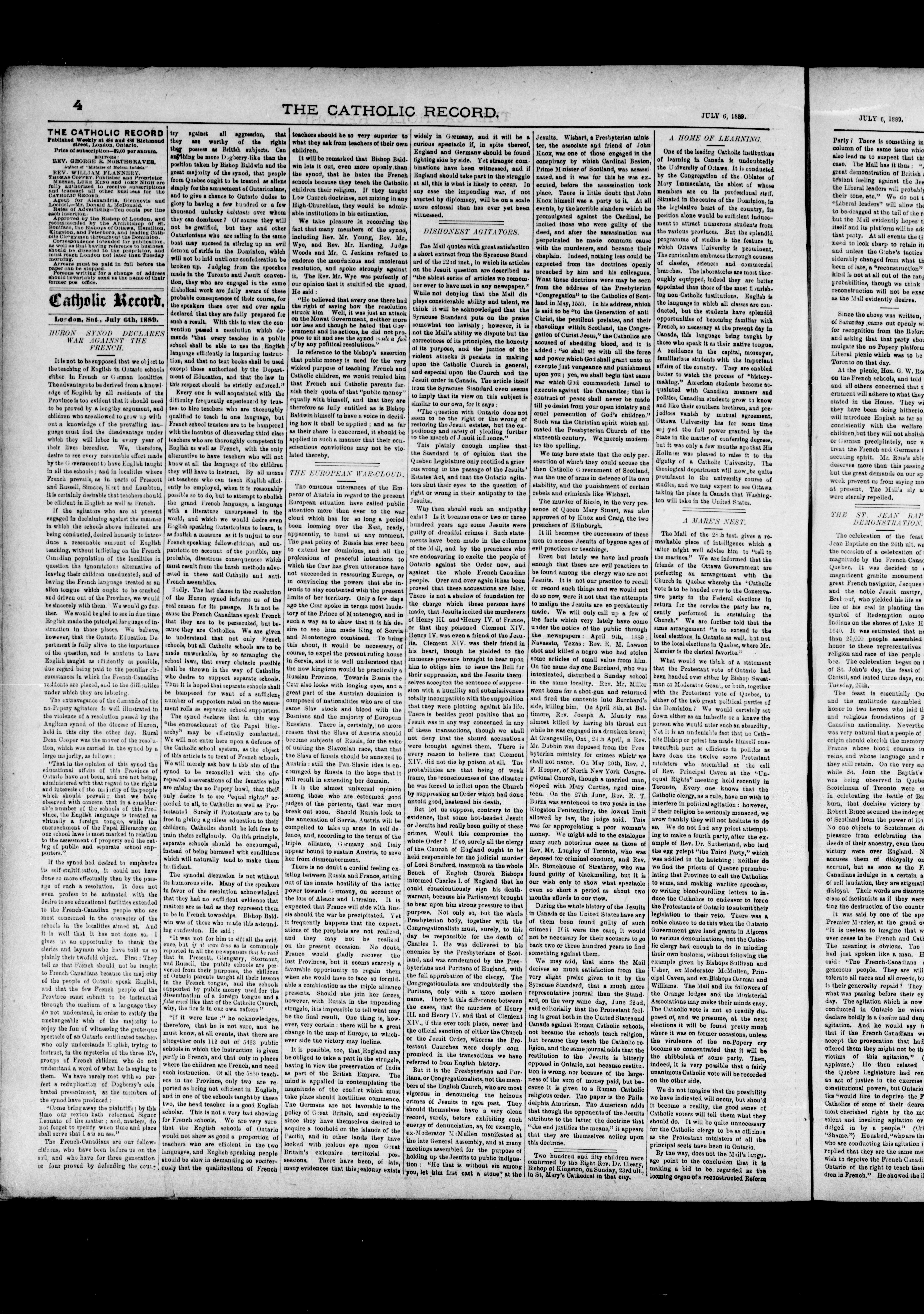 The Catholic record : Volume 11, No. 559 (July 6, 1889)