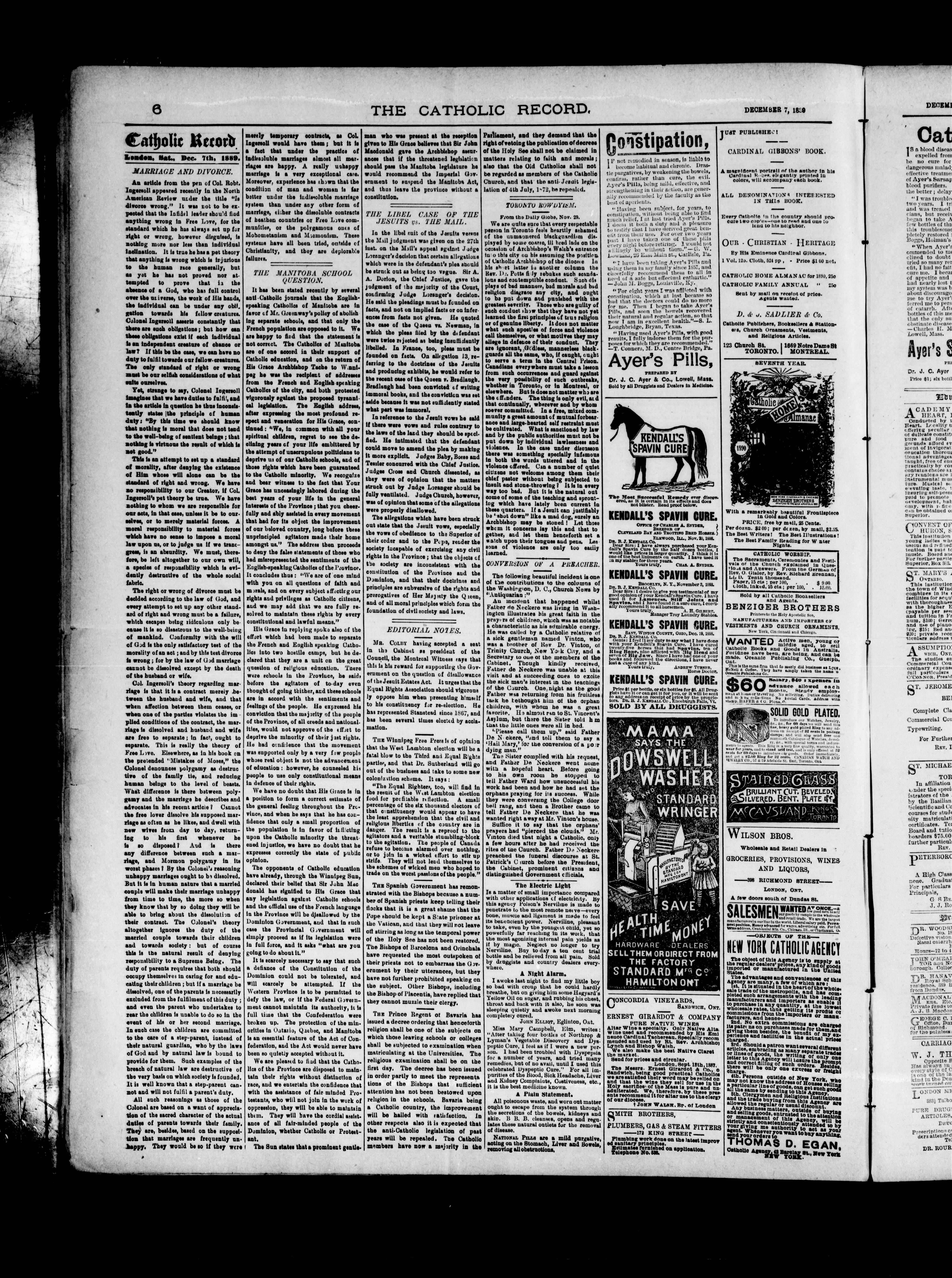 The Catholic record : Volume 12, No. 581 (December 7, 1889)