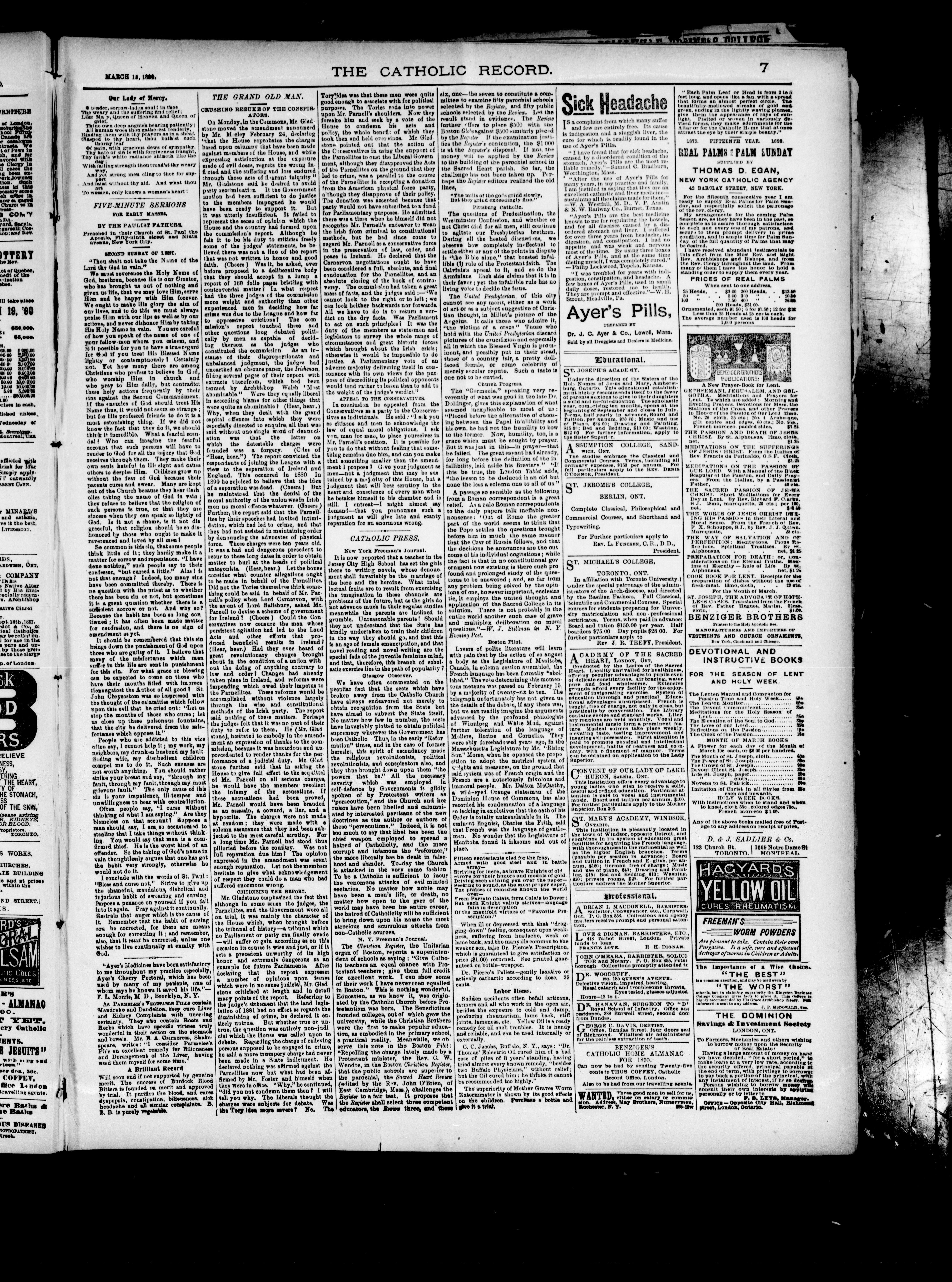 The Catholic record : Volume 13, No. 595 (March 15, 1890)