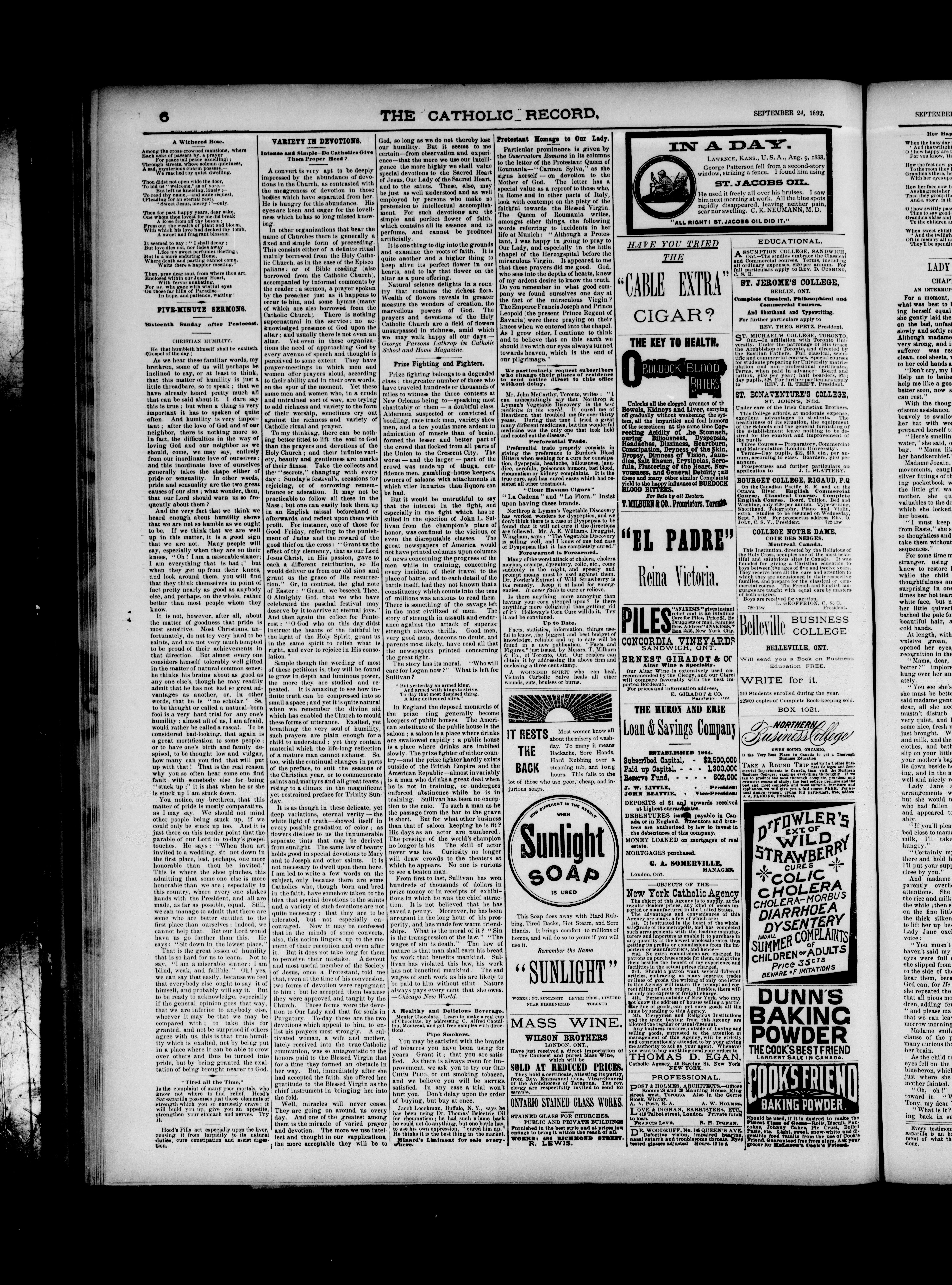 The Catholic record : Volume XIV, No. 727 (September 24, 1892)