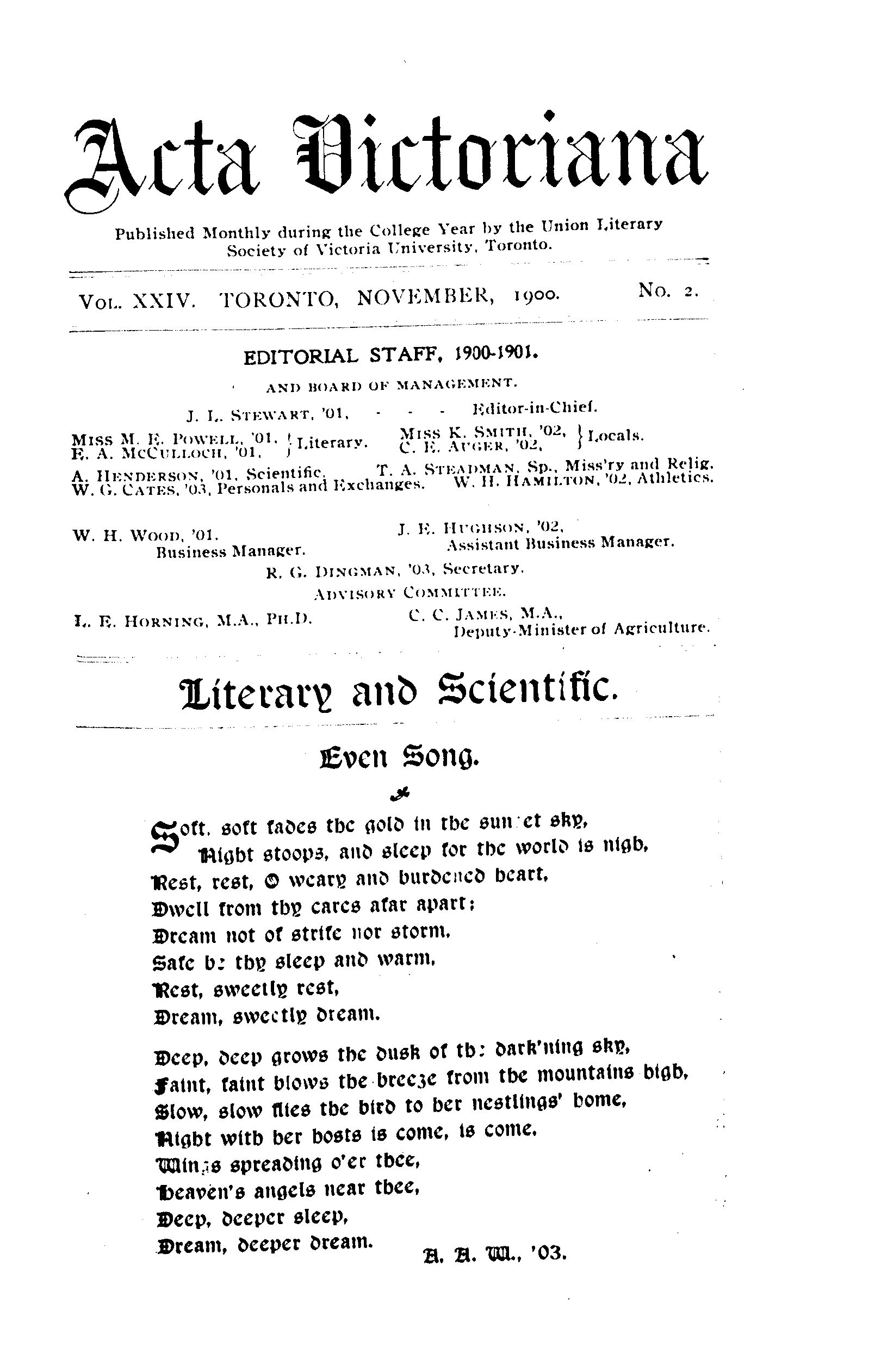 - Acta Victoriana [Vol. 24, no. 2 (Nov. 1900)]