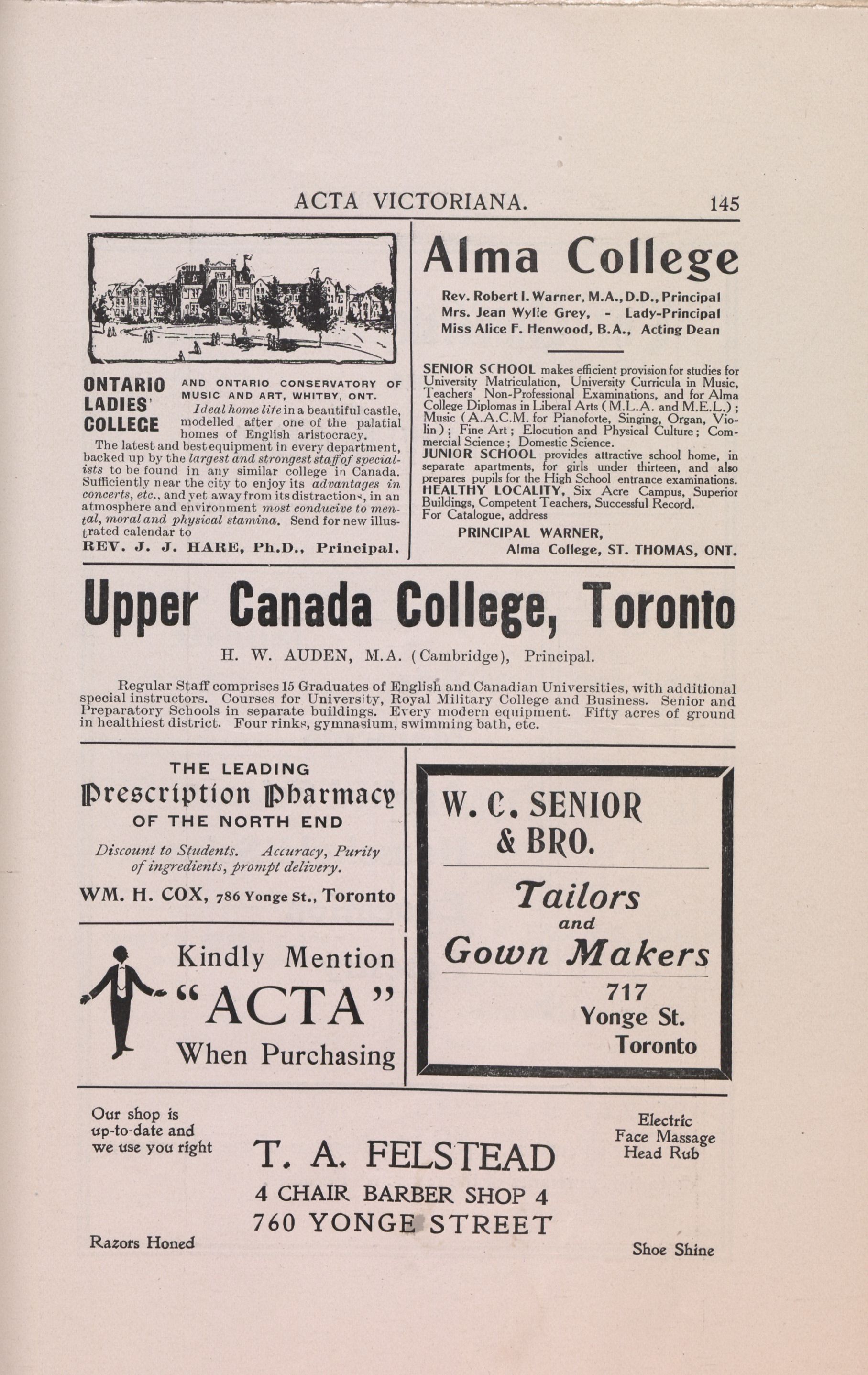 Acta Victoriana : Vol. XXXII, No. 2 (November 1908)