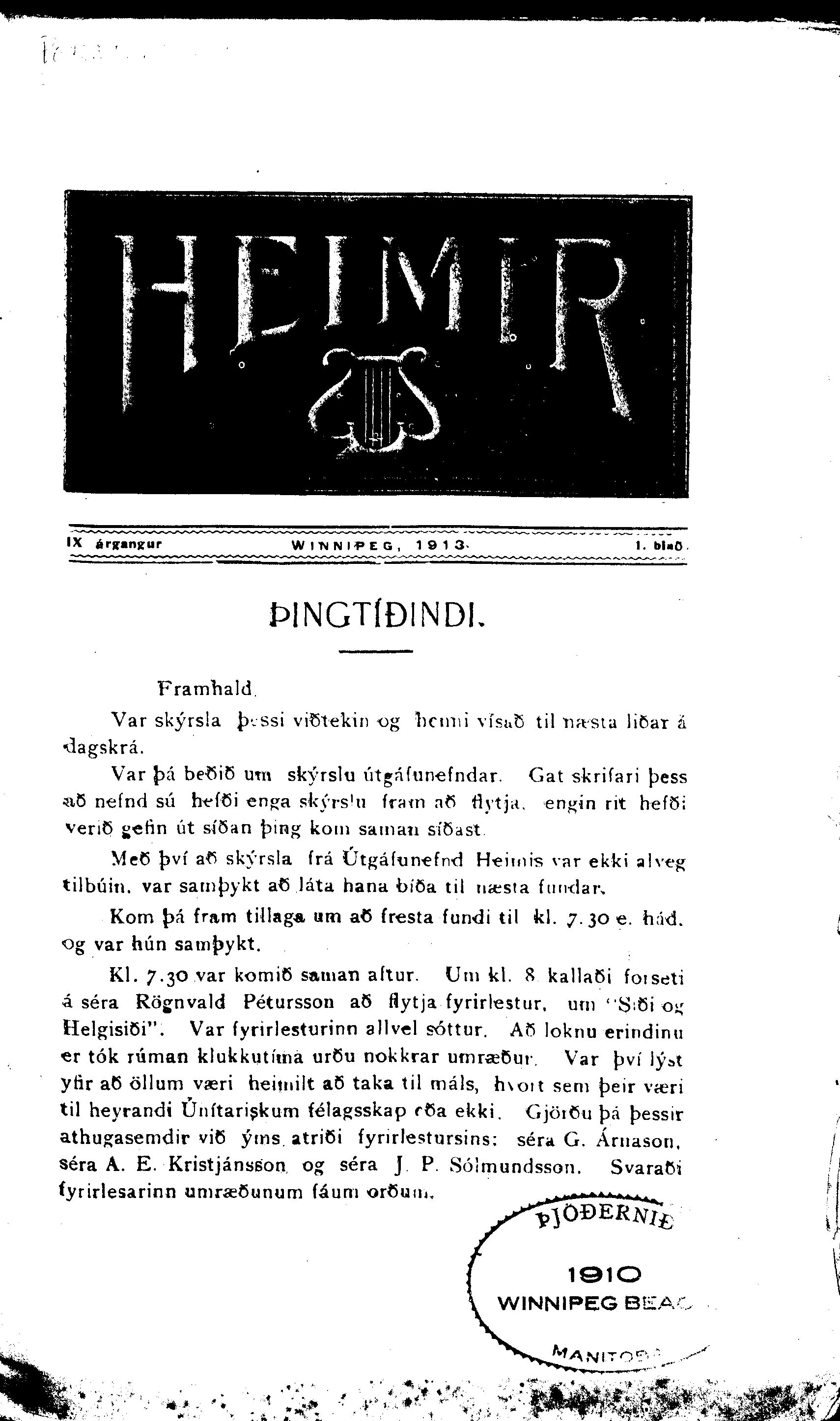 Winnipeg : ňítariska Kyrkjufjelag Vestur- slendinga, [1913]