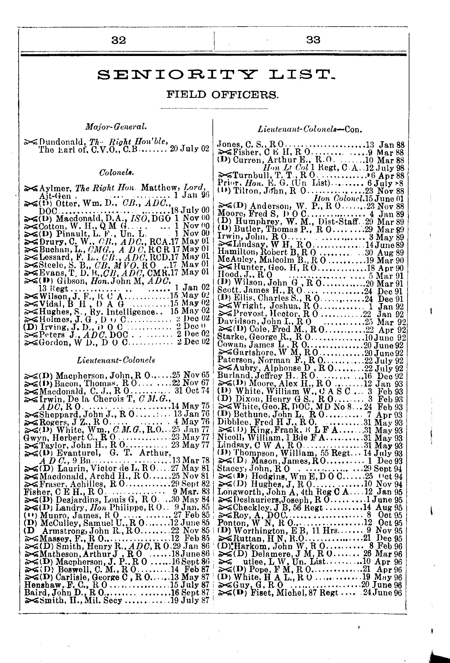 - The quarterly militia list of the Dominion of Canada [Jan. 1, 1904]