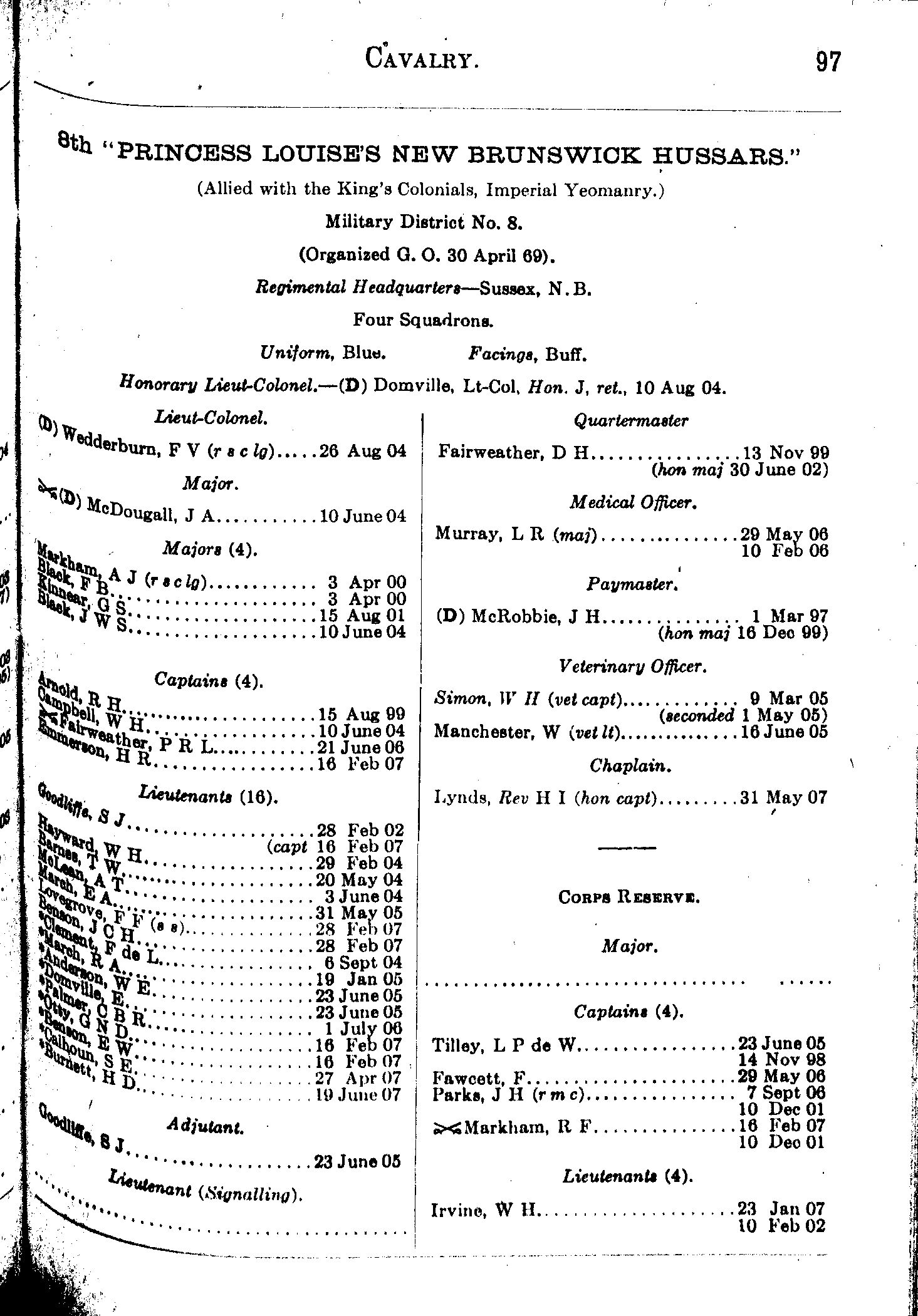 The quarterly militia list of the Dominion of Canada : [Oct. 1, 1907]