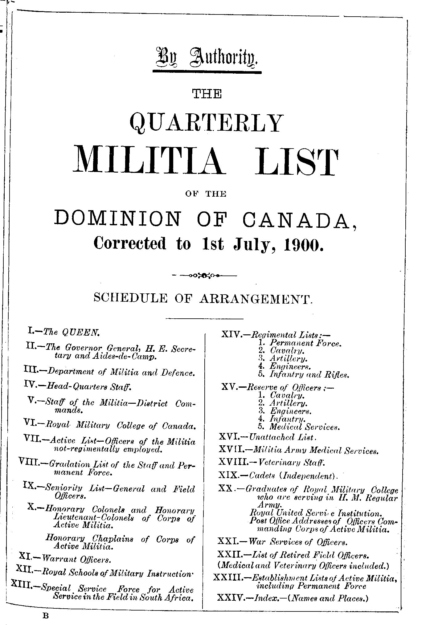 The quarterly militia list of the Dominion of Canada : [July 1, 1900]