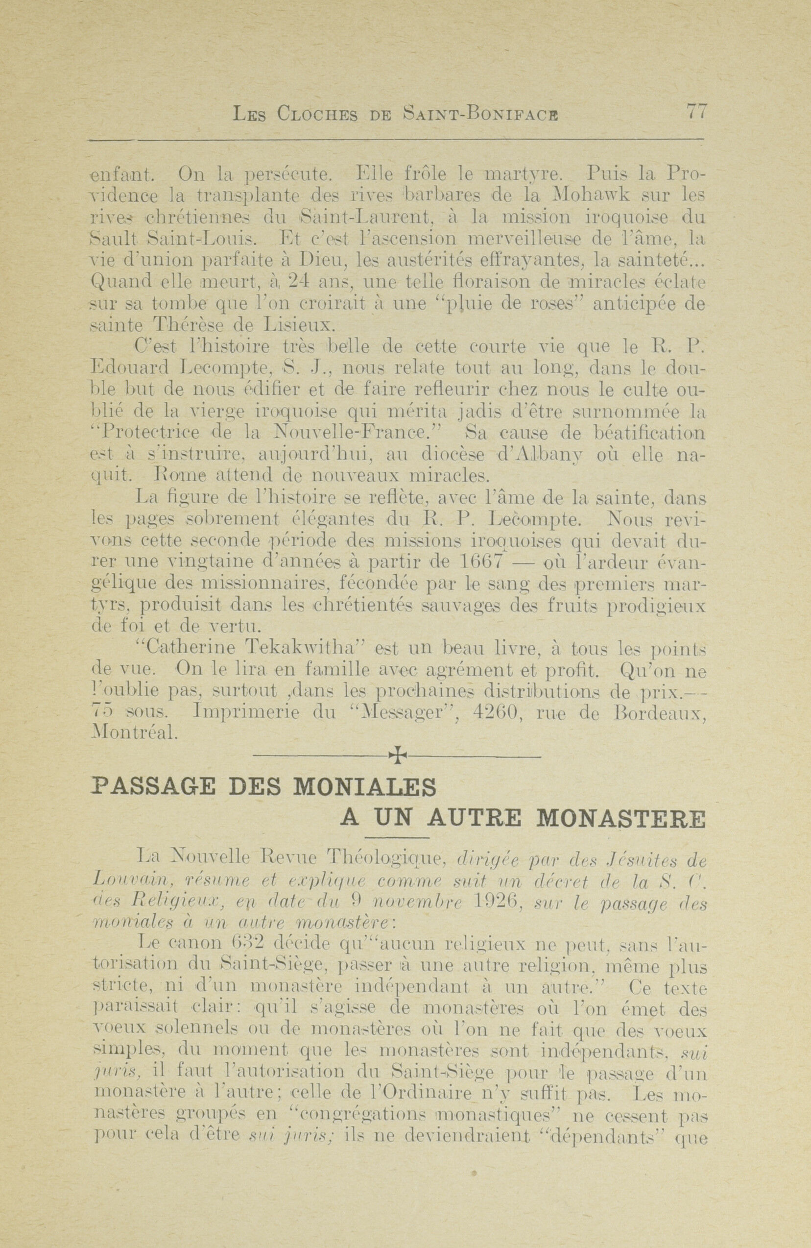 Les cloches de Saint-Boniface : Les cloches de Saint-Boniface : Vol. XXVI, No 4 (avril 1927)