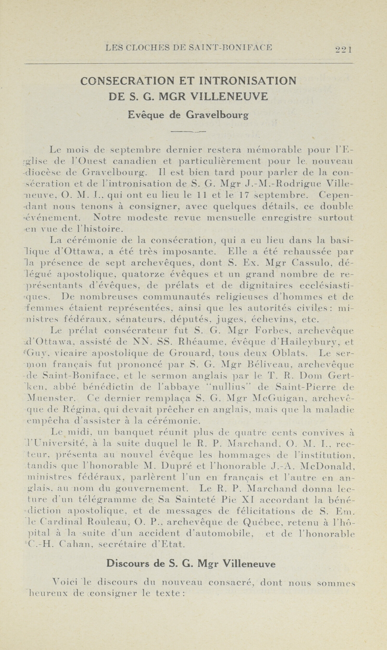 - Les cloches de Saint-Boniface : Vol. XXIX, No 10 (octobre 1930)