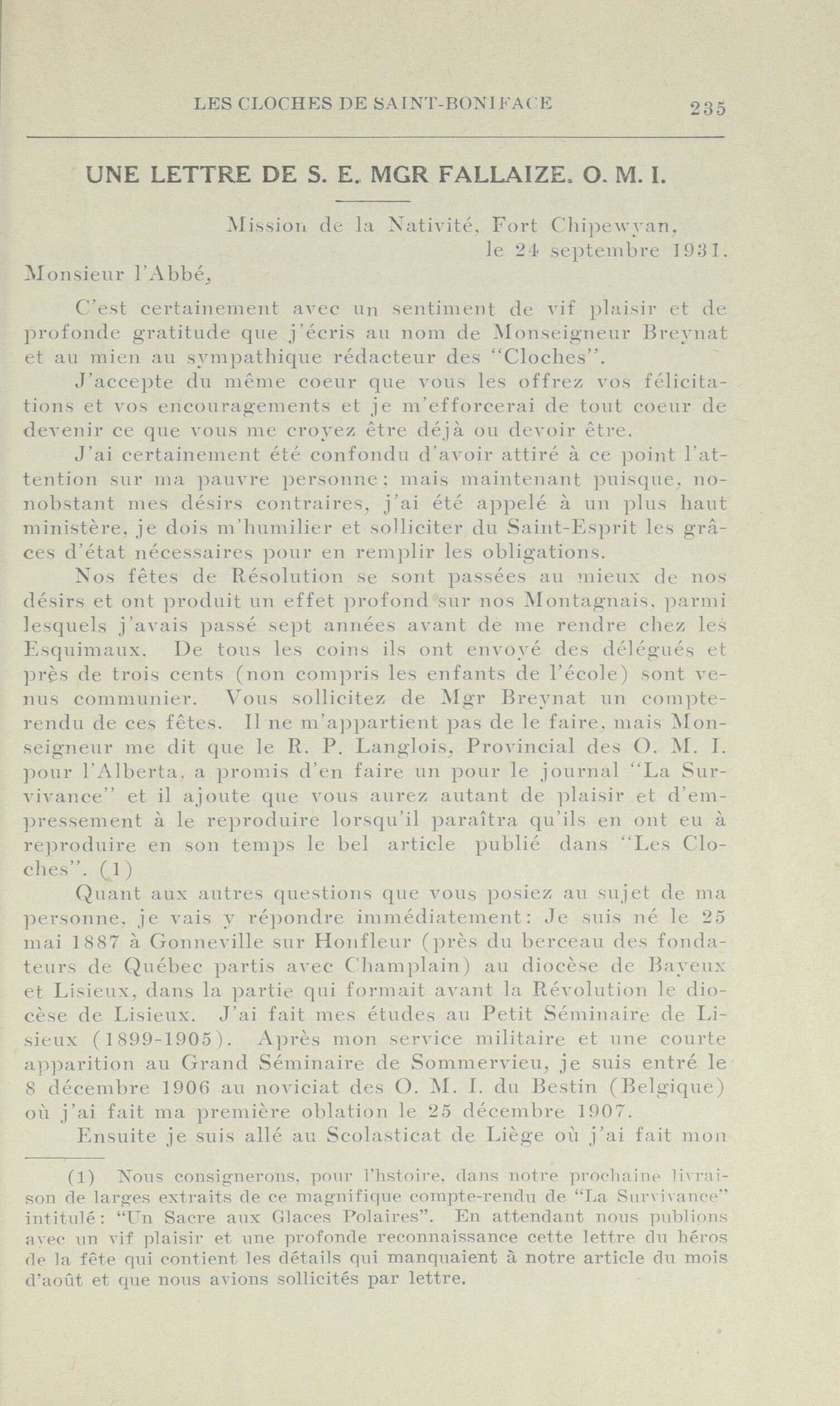 Les cloches de Saint-Boniface : Vol. XXX, No 10 (octobre 1931)