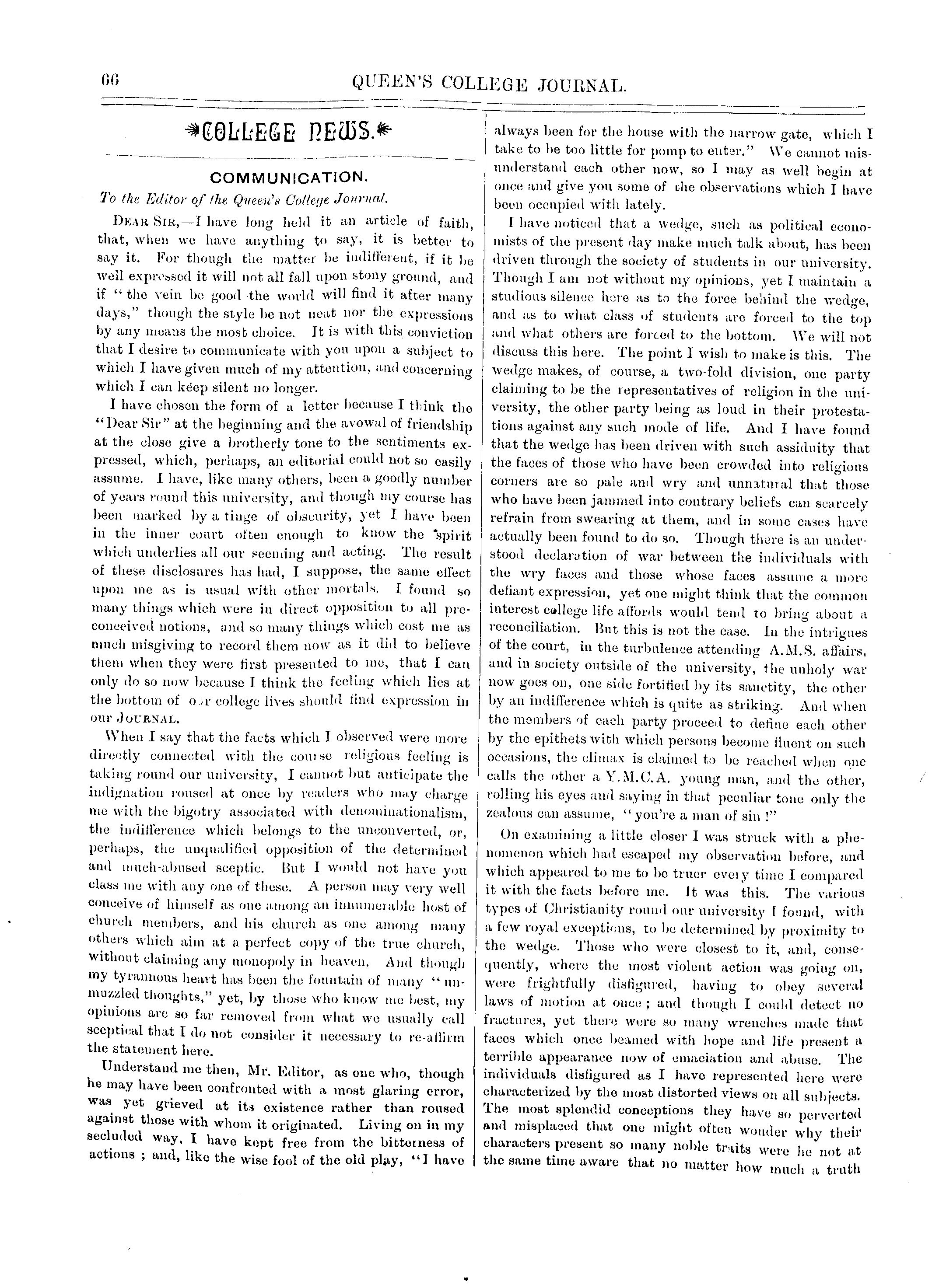 Queen's College journal [Vol. 16, no. 5 (Jan. 31, 1889)] .