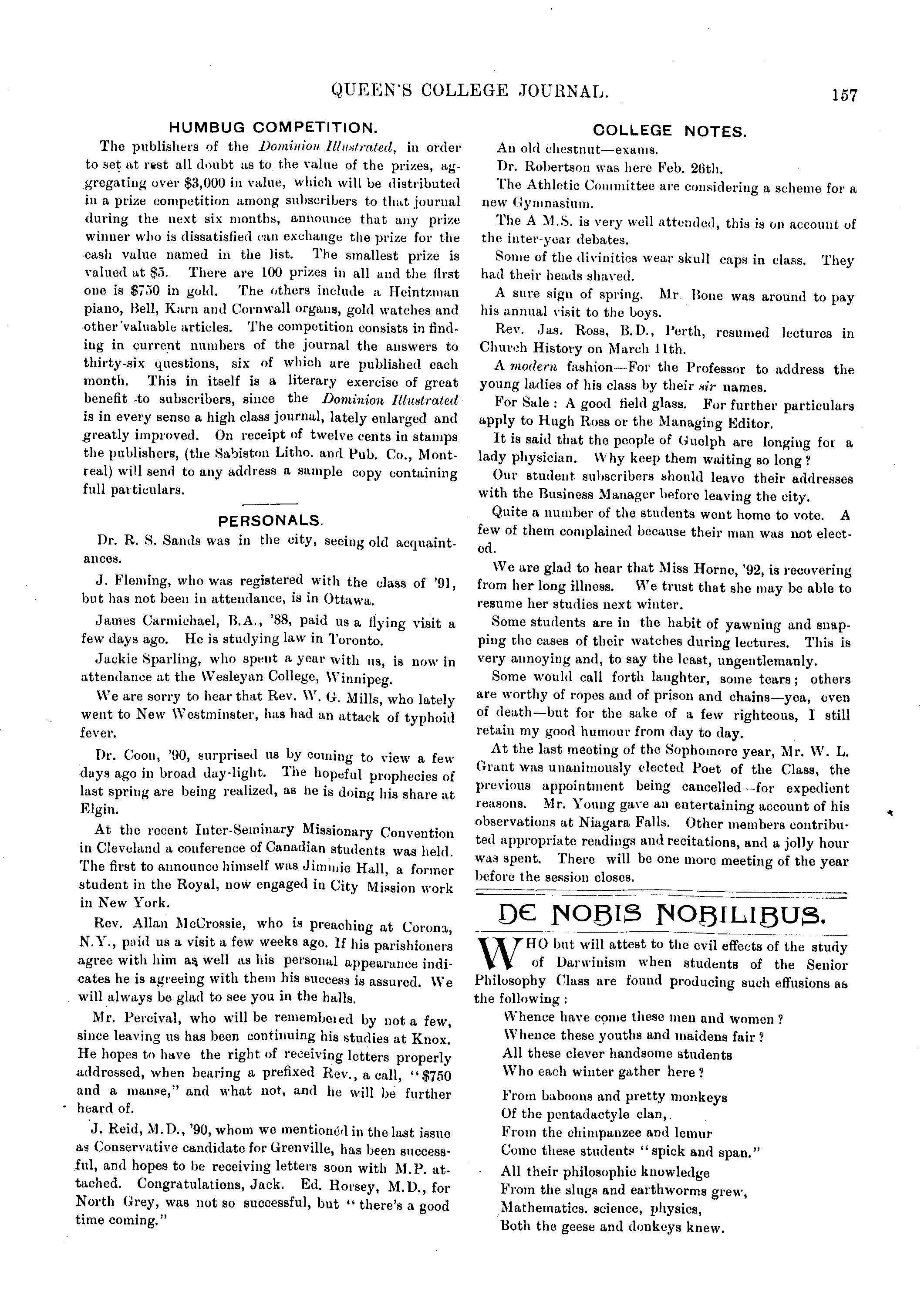 Queen's College journal [Vol. 18, no. 10 (Mar. 20, 1891)] .
