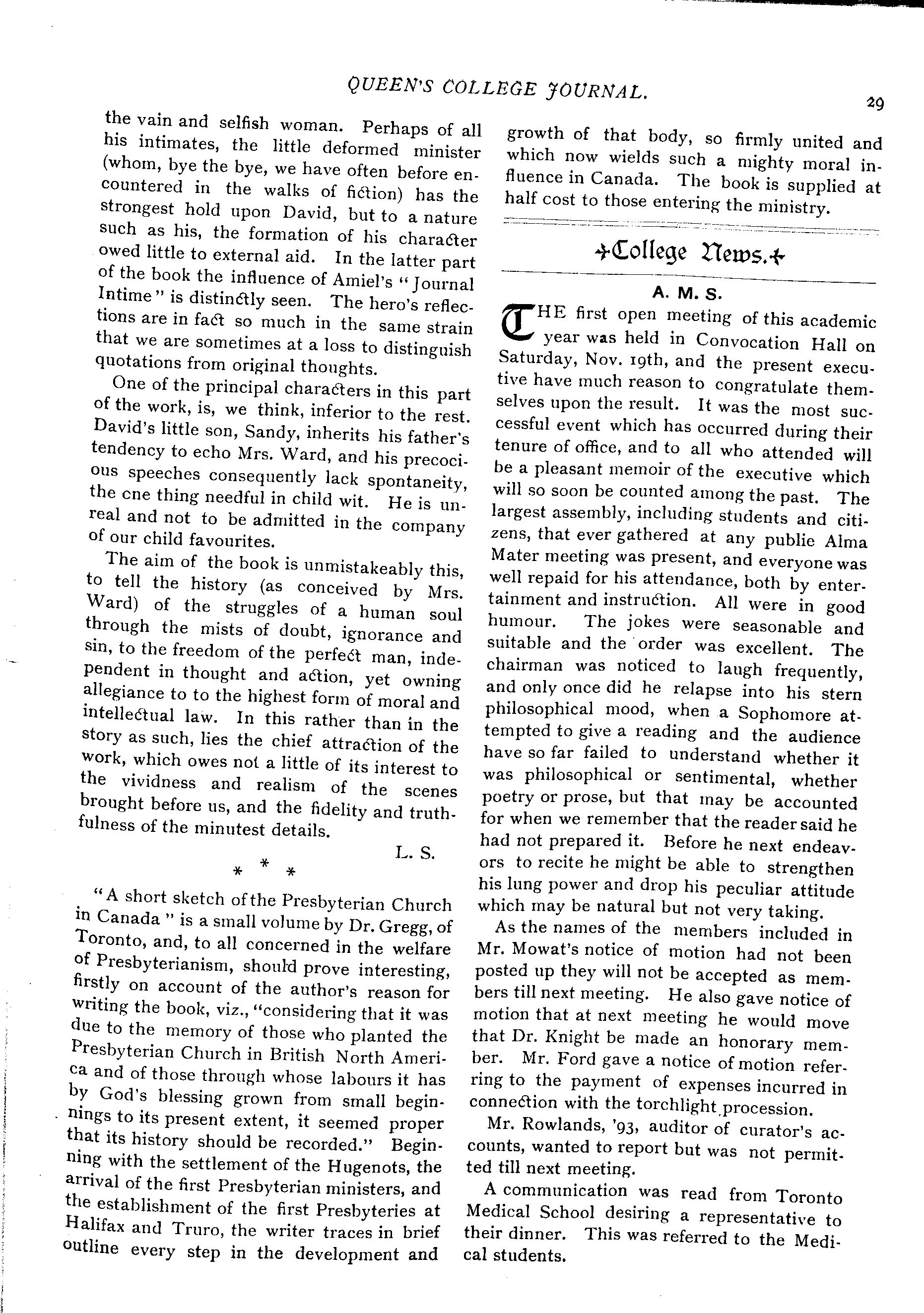 - Queen's College journal [Vol. 20, no. 4 (Nov. 26, 1892)] .