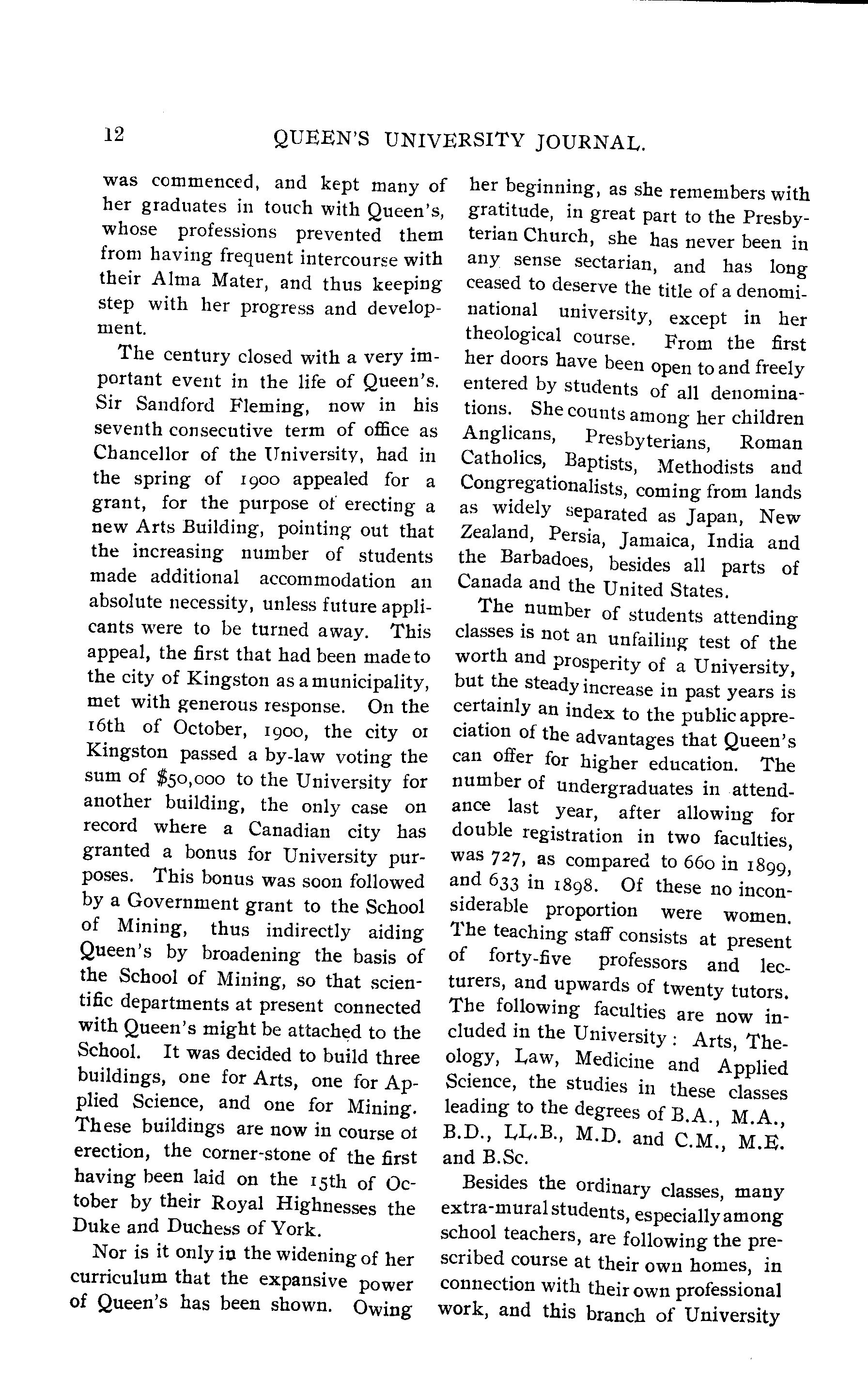 Queen's University journal : Vol. 29, no. 1 (Nov. 1, 1901)