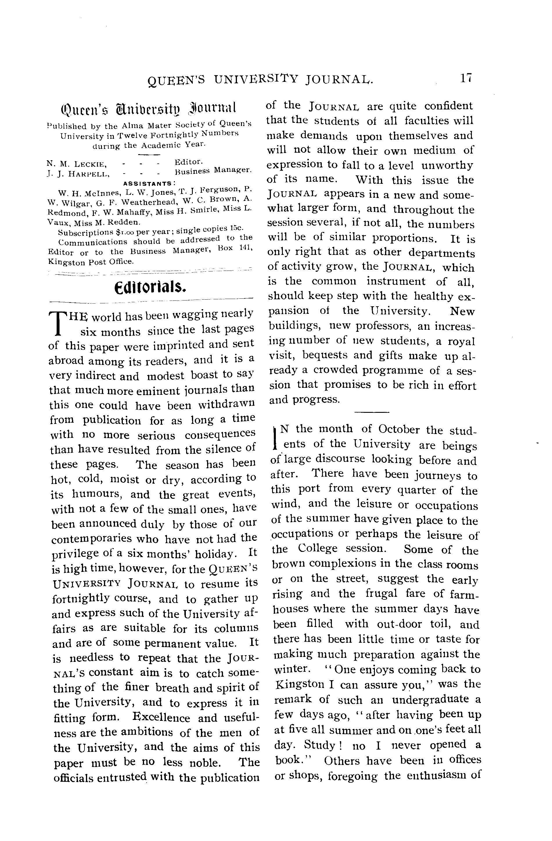 Queen's University journal : Vol. 29, no. 1 (Nov. 1, 1901)