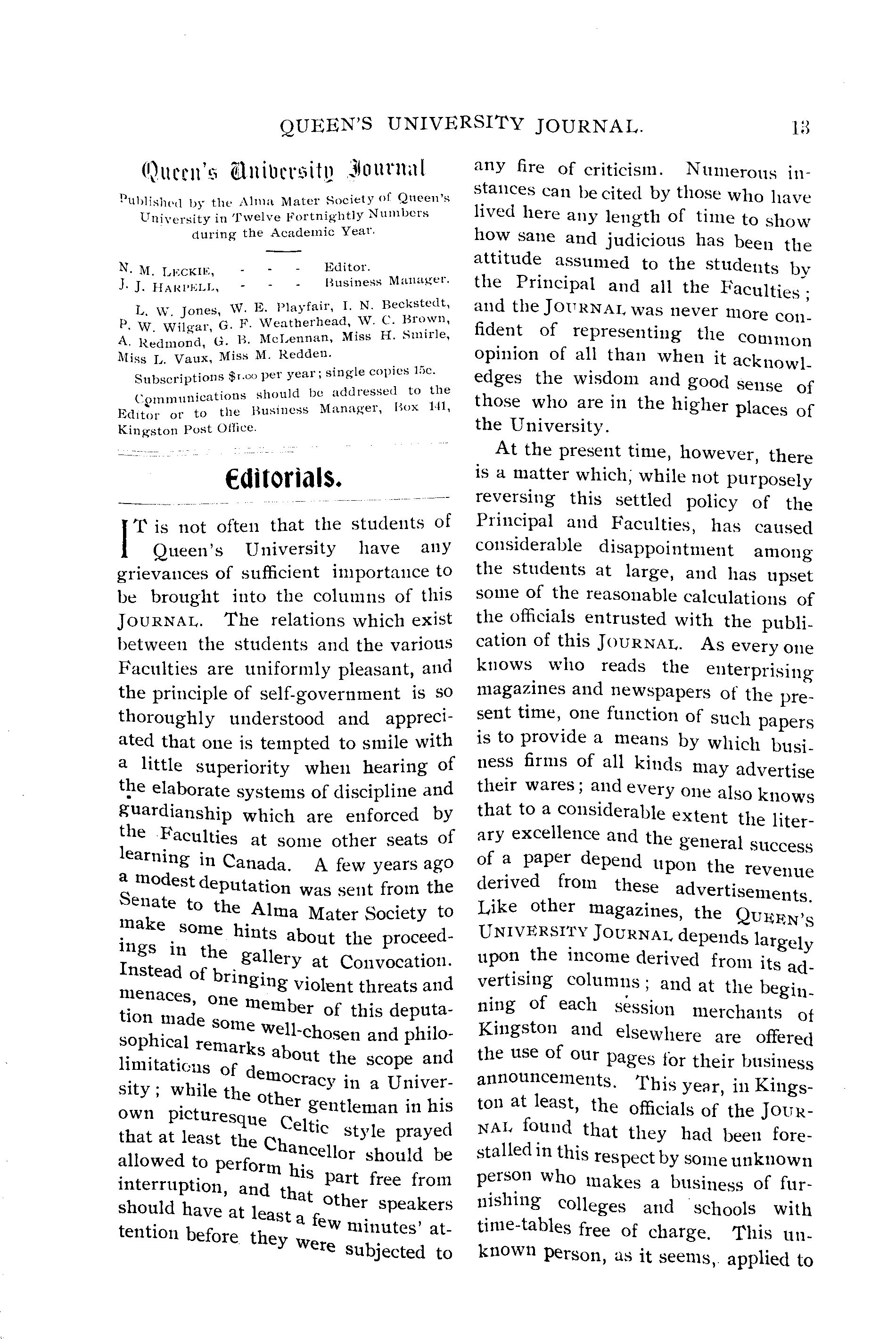 Aide Kingston, Ont. : Alma Mater Society of Queen's University, [1901]; 48 images, 47 avec recherche en texte intégral