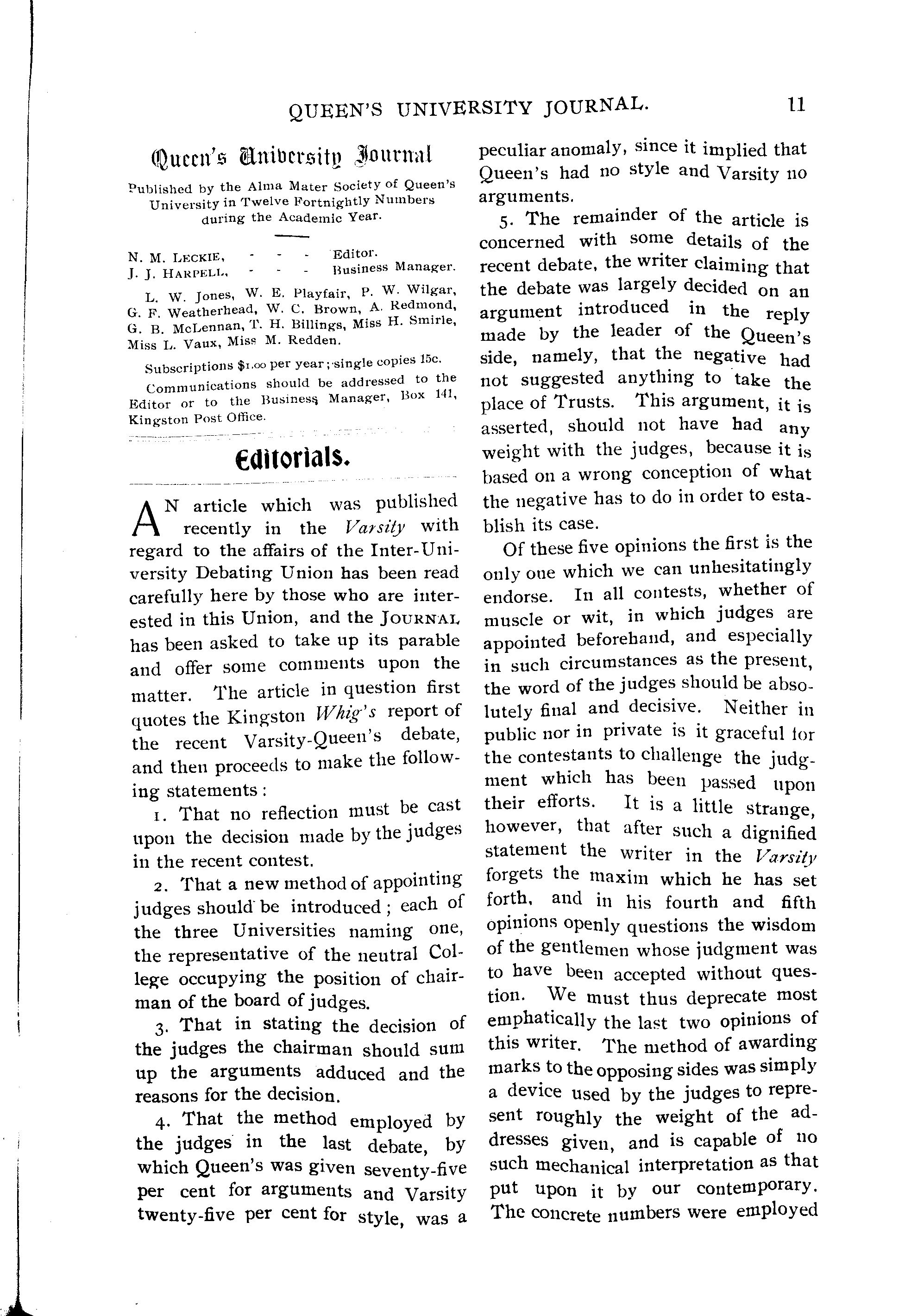 Queen's University journal : Vol. 29, no. 6 (Jan. 31, 1902)