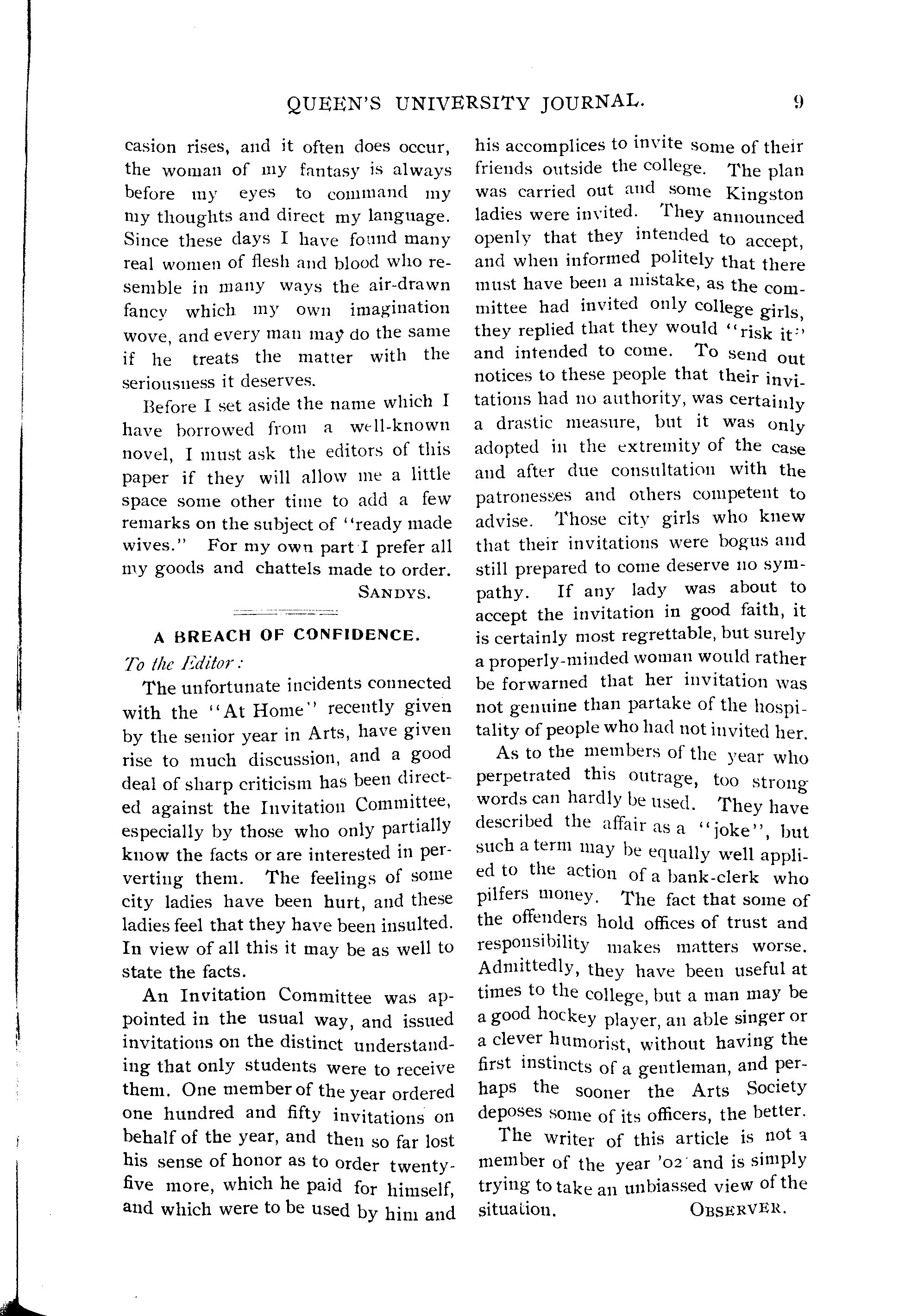 Queen's University journal : Vol. 29, no. 6 (Jan. 31, 1902)
