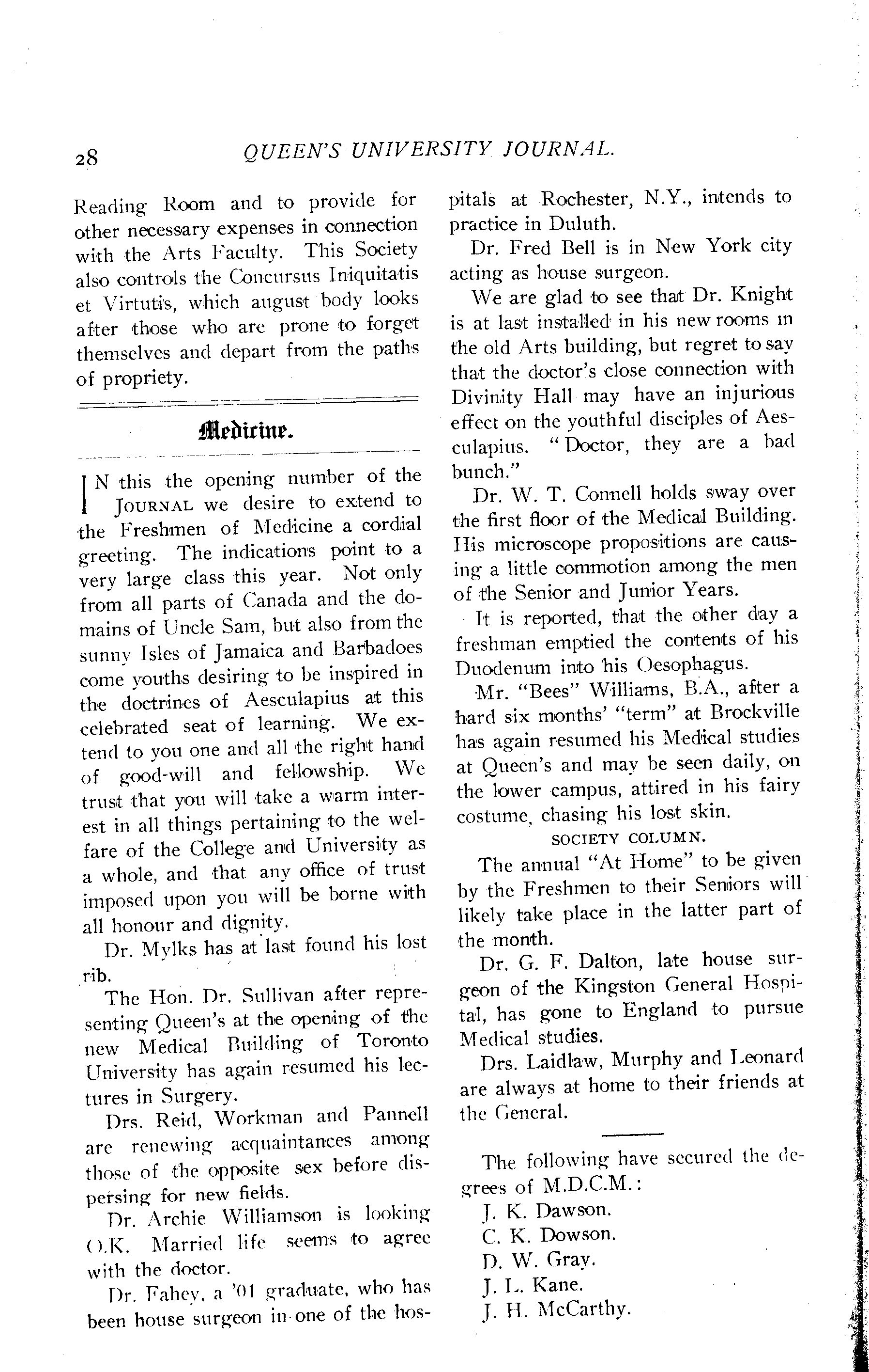 Queen's University journal : Vol. 31, no. 1 (Oct. 16, 1903)