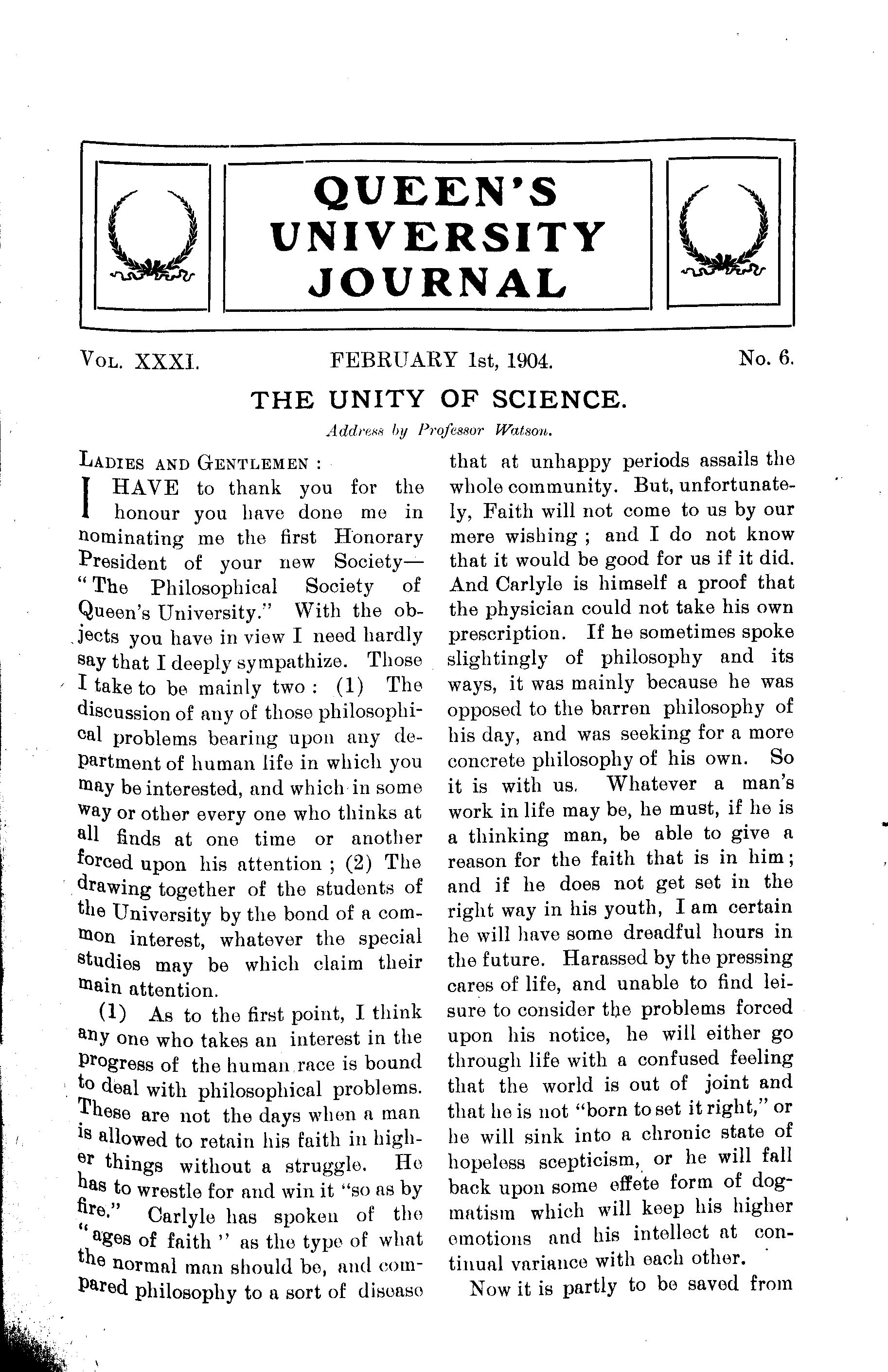 Queen's University journal : Vol. 31, no. 6 (Feb. 1, 1904)