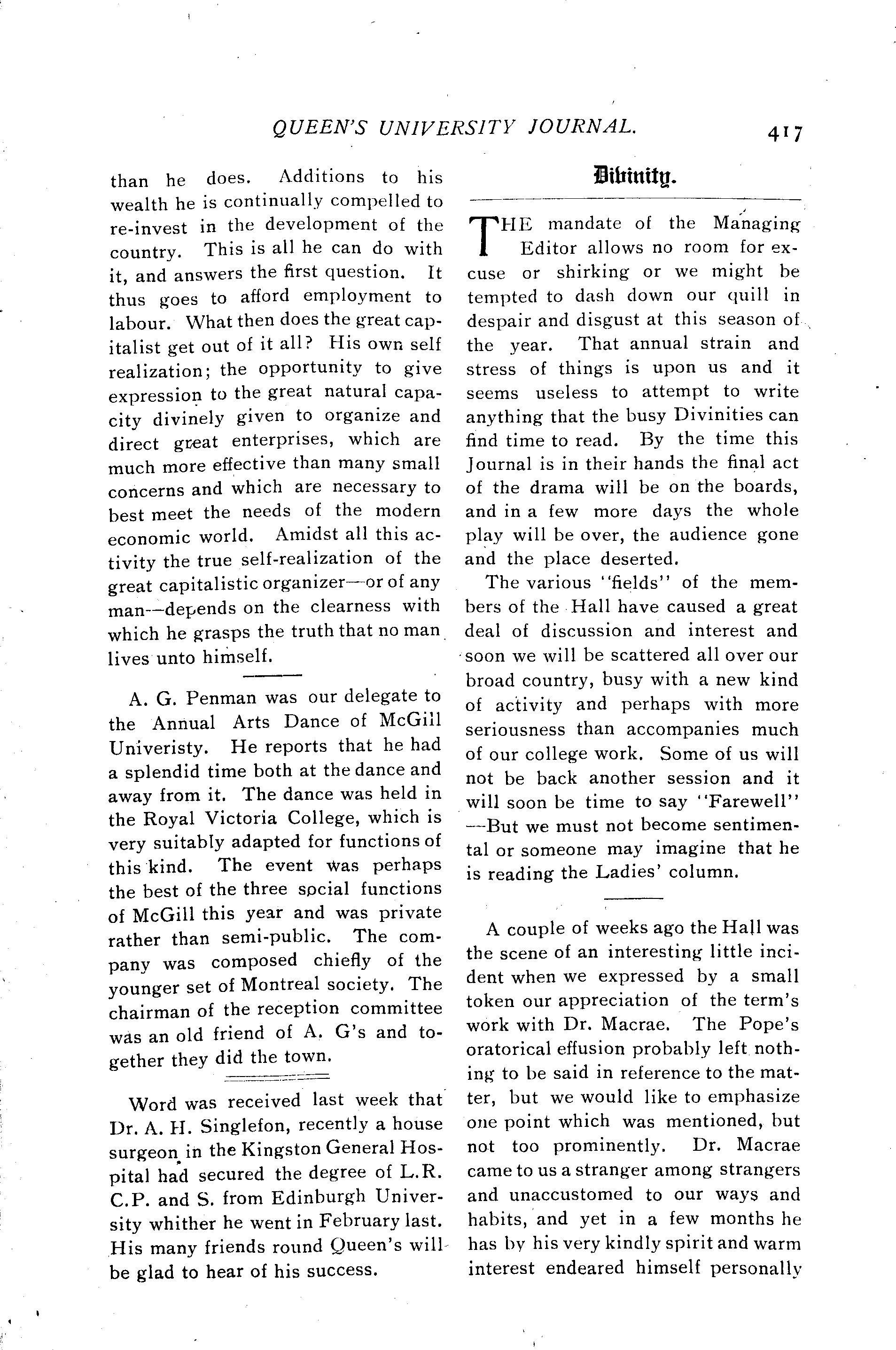 Queen's University journal : Vol. 32, no. 11 (Apr. 15, 1905)