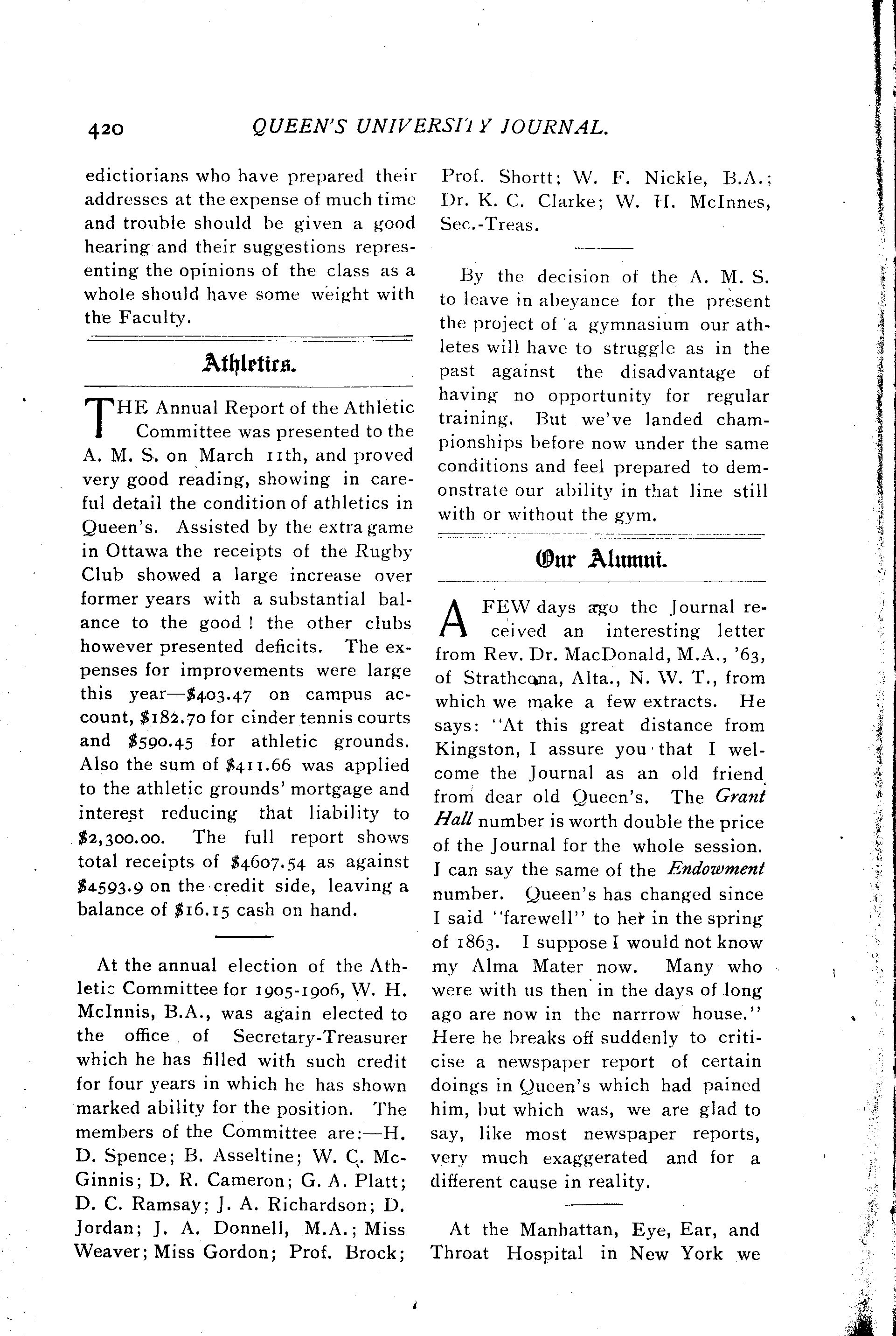 Queen's University journal : Vol. 32, no. 11 (Apr. 15, 1905)