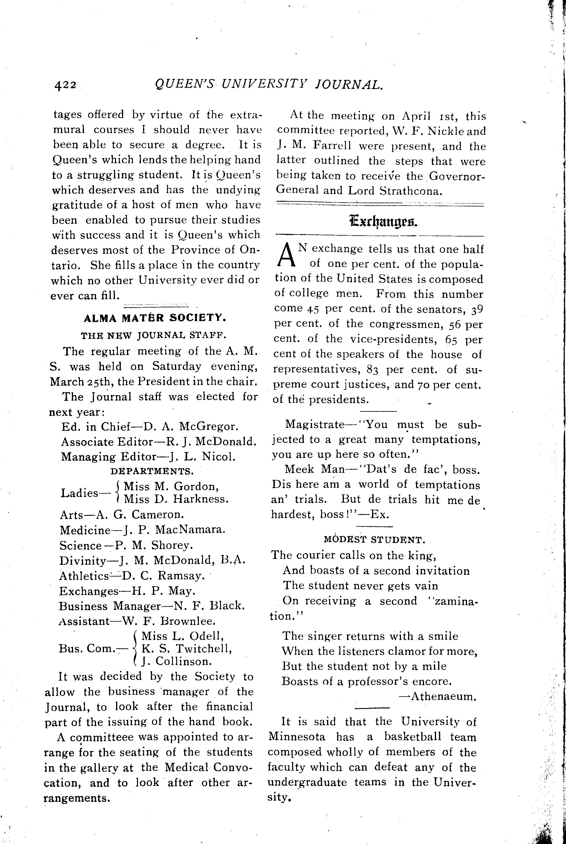 Queen's University journal : Vol. 32, no. 11 (Apr. 15, 1905)