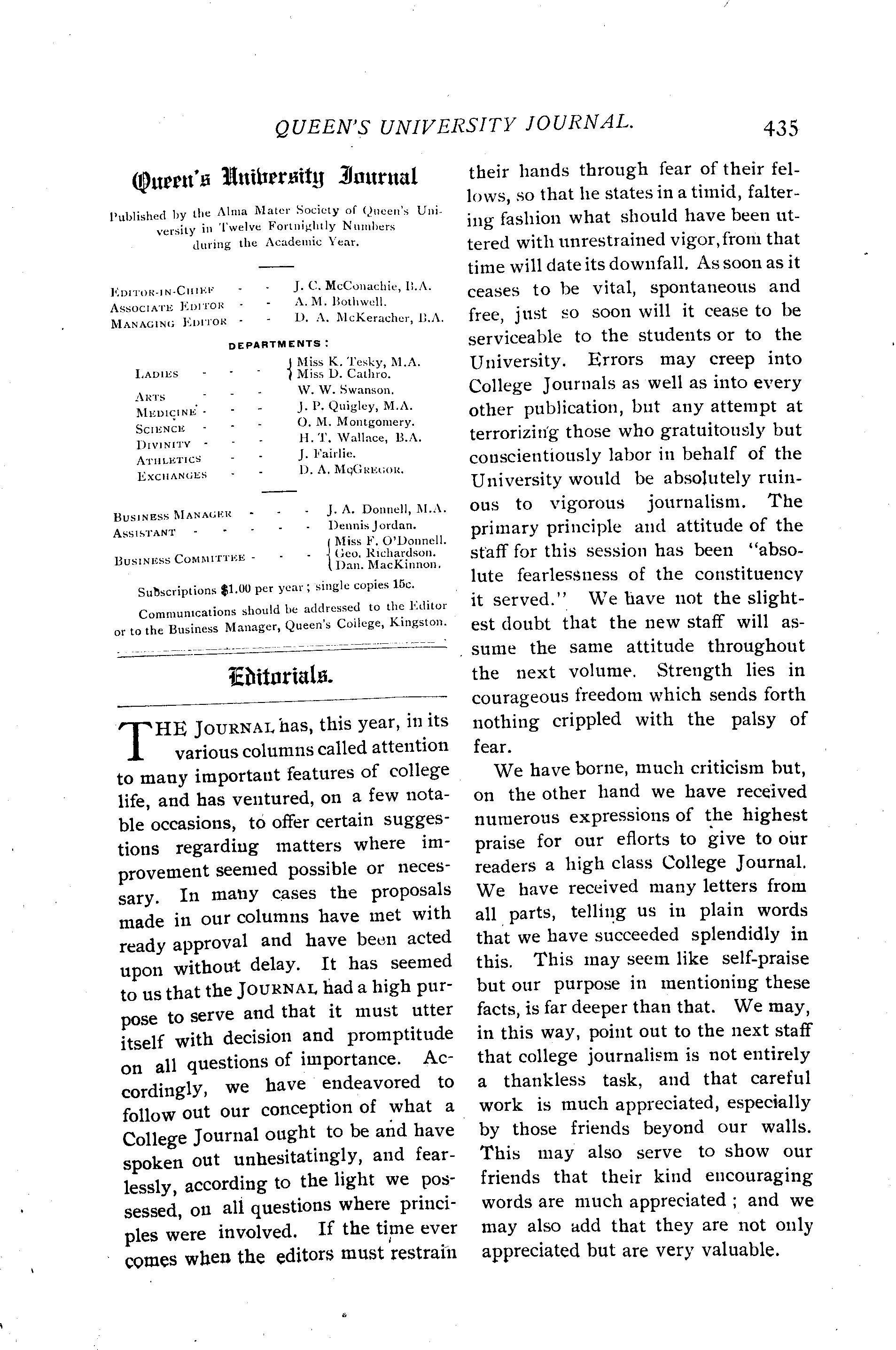 Queen's University journal : Vol. 32, no. 12 (May 1, 1905)