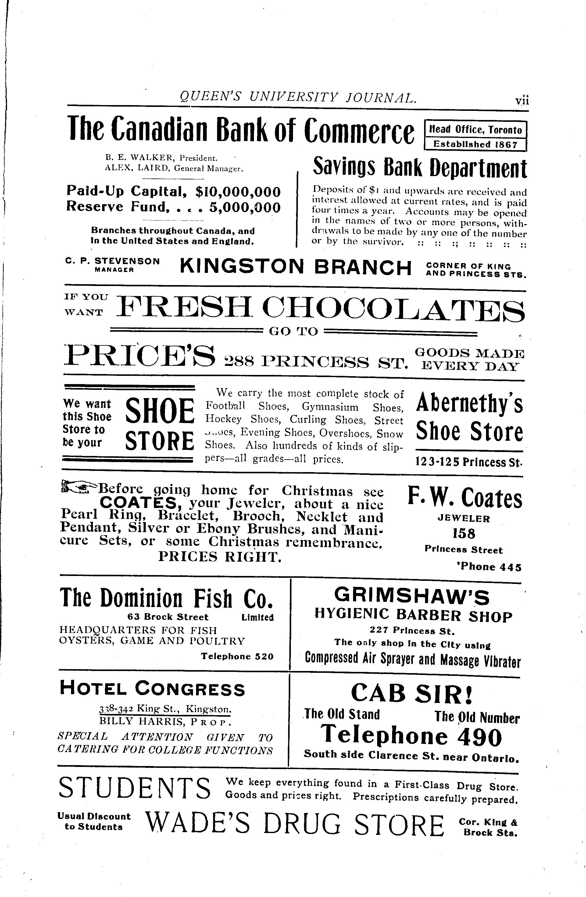 Kingston, Ont. : Alma Mater Society of Queen's University, [1908]; 56 images, 55 avec recherche en texte intégral