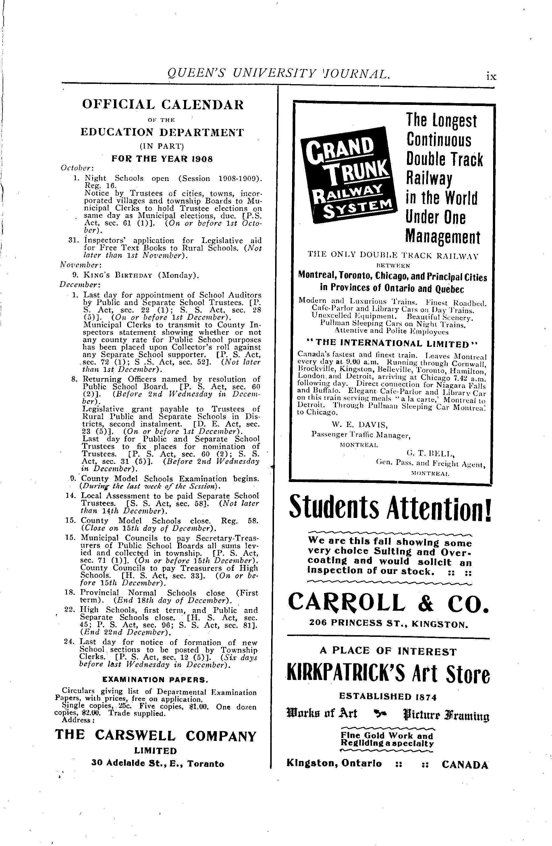 Kingston, Ont. : Alma Mater Society of Queen's University, [1908]; 56 images, 55 avec recherche en texte intégral