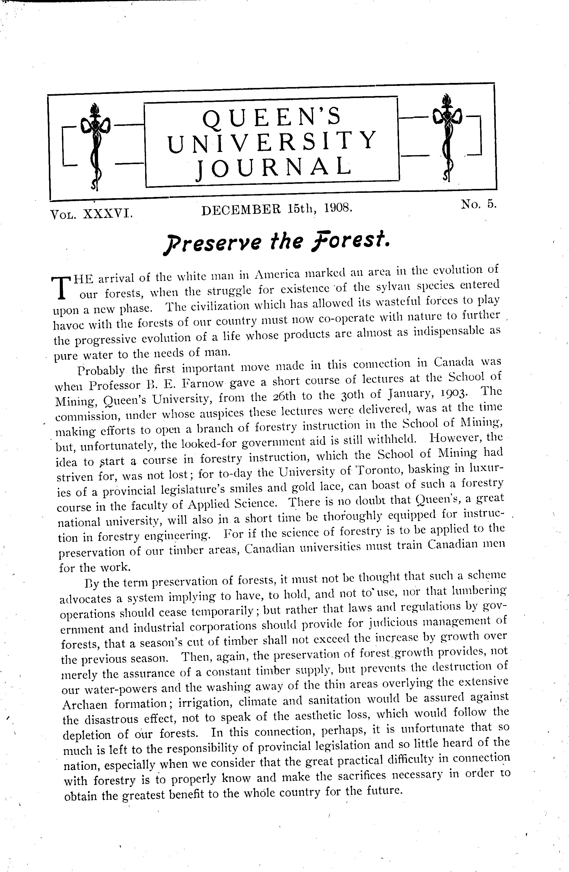 Queen's University journal : Vol. 36, no. 5 (Dec. 15, 1908)