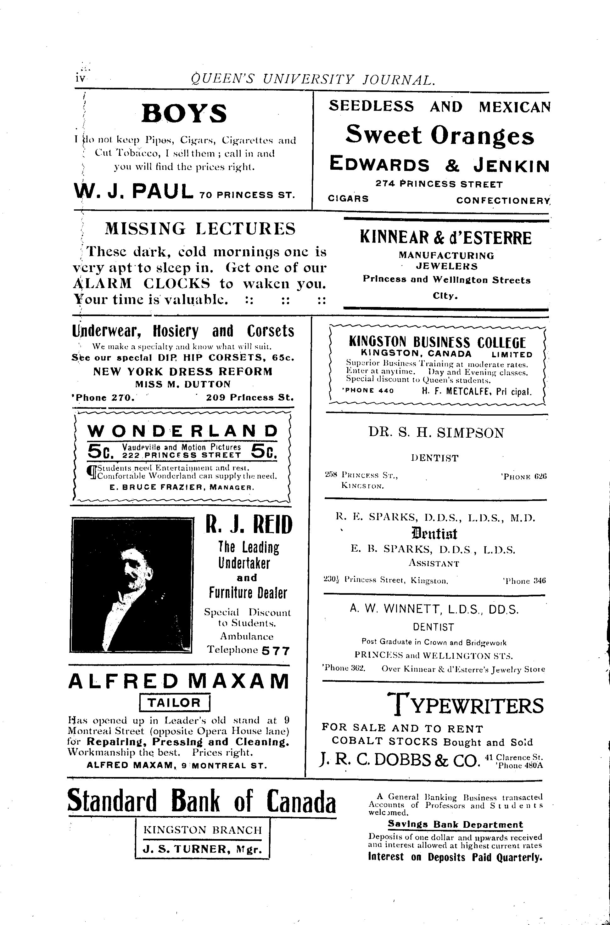 Kingston, Ont. : Alma Mater Society of Queen's University, [1909]; 59 images, 58 avec recherche en texte intégral