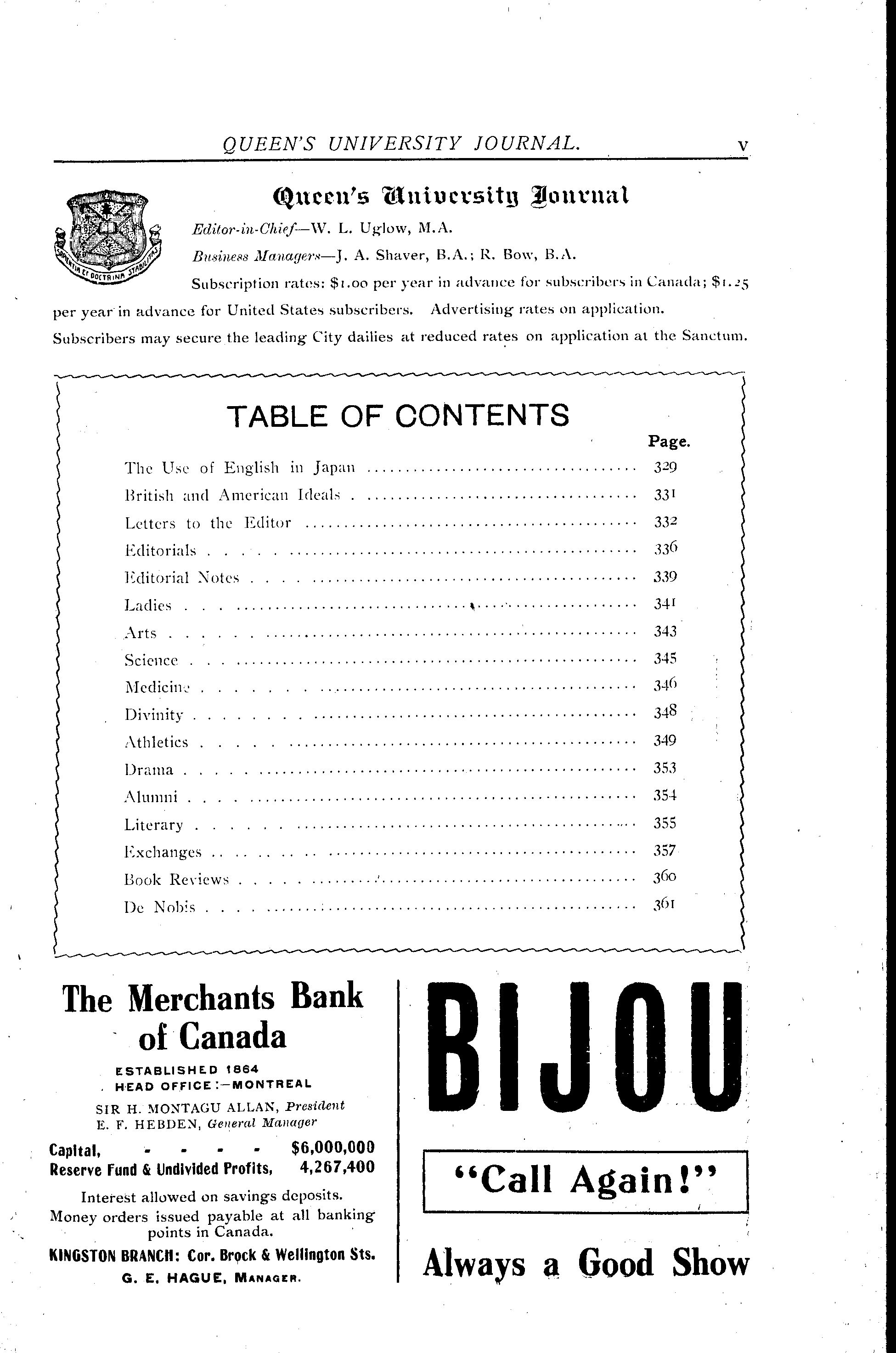 Kingston, Ont. : Alma Mater Society of Queen's University, [1909]; 52 images, 51 avec recherche en texte intégral
