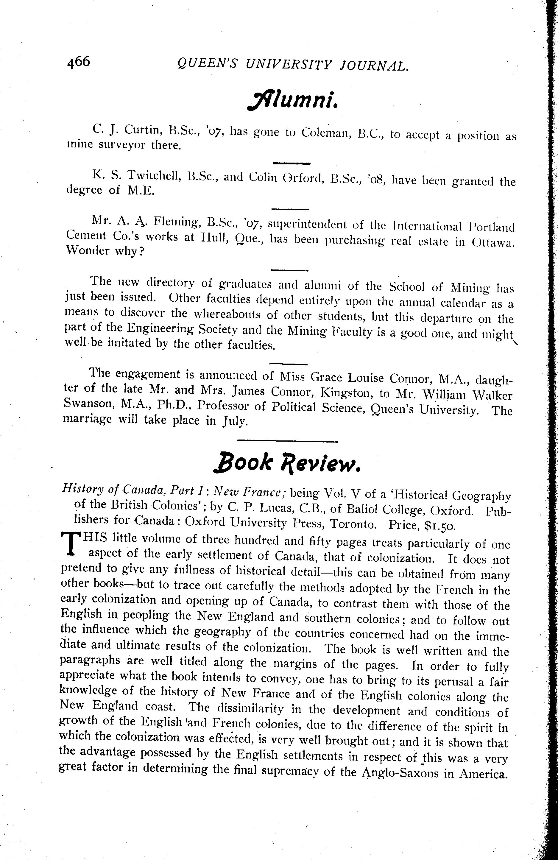 Kingston, Ont. : Alma Mater Society of Queen's University, [1909]; 54 images, 52 avec recherche en texte intégral