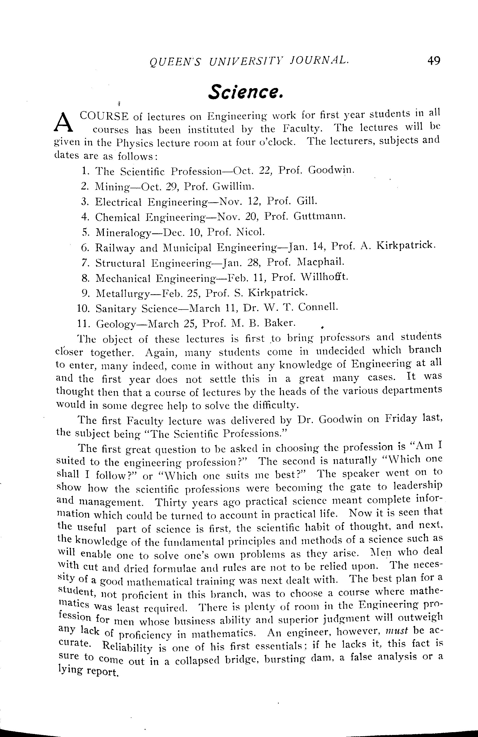 Queen's University journal : Vol. 37, no. 2 (Oct. 27, 1909)