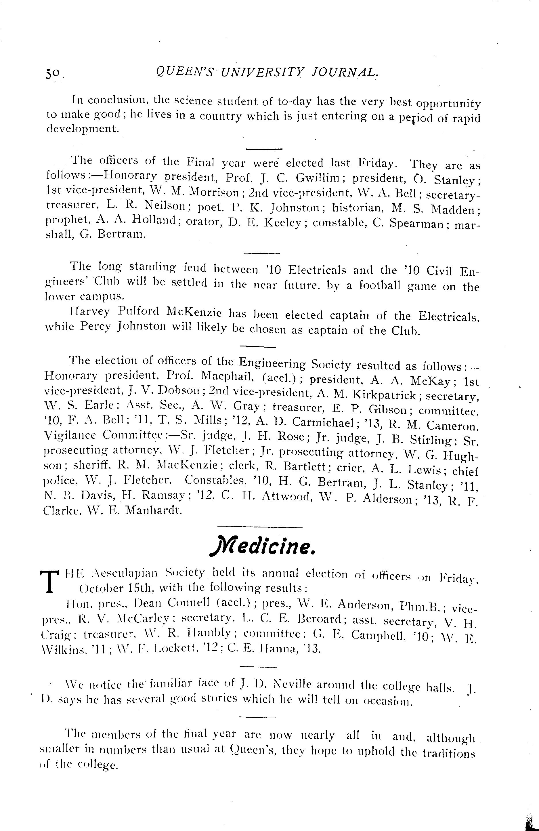 Queen's University journal : Vol. 37, no. 2 (Oct. 27, 1909)