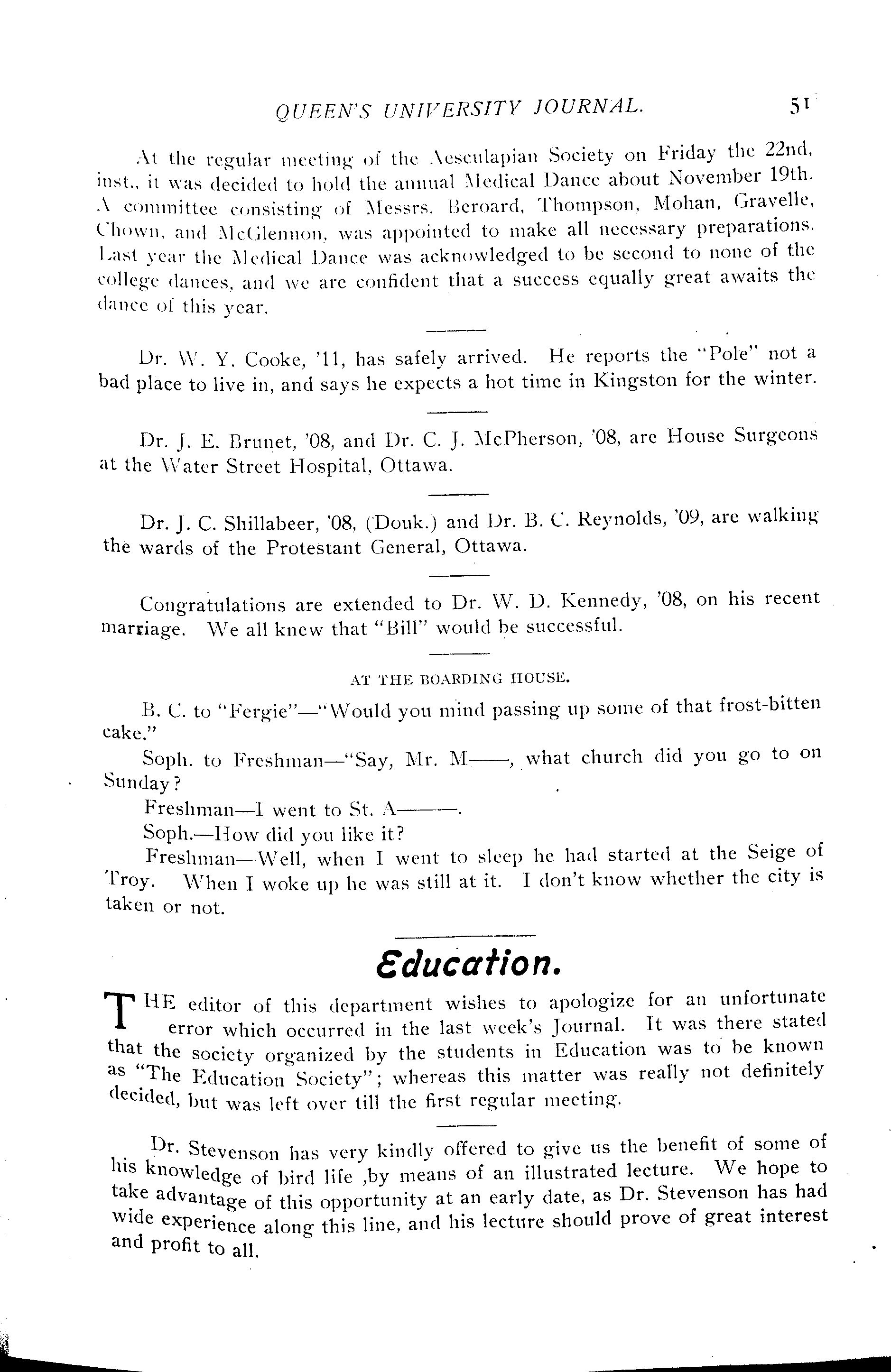 Queen's University journal : Vol. 37, no. 2 (Oct. 27, 1909)