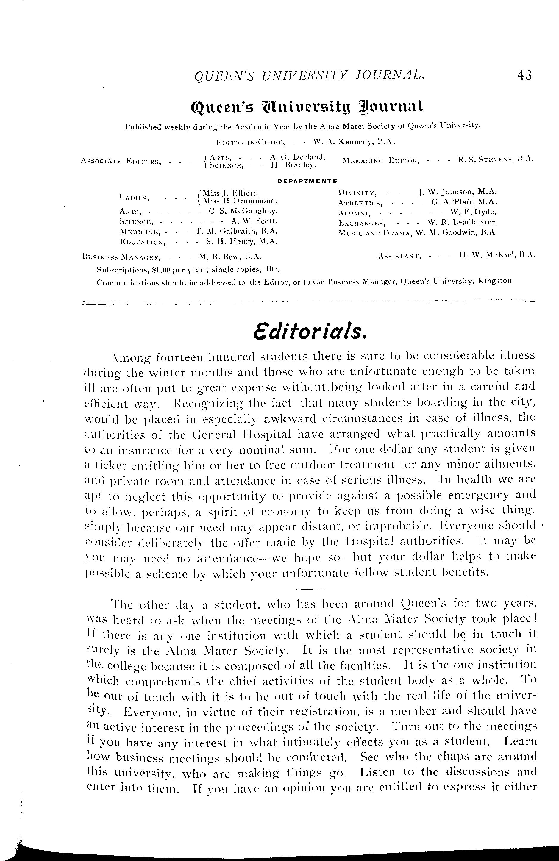 Queen's University journal : Vol. 37, no. 2 (Oct. 27, 1909)
